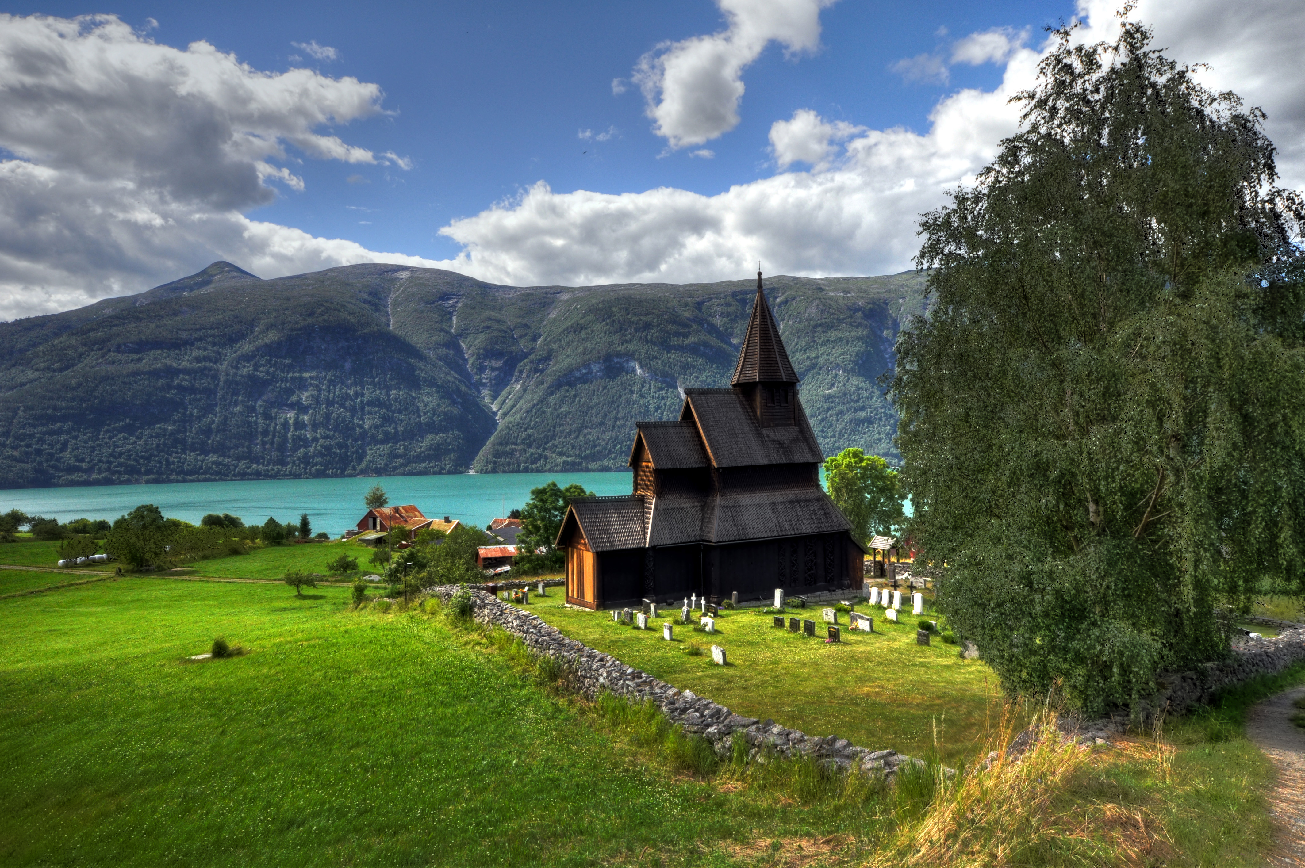 12~13세기에 지어진 우르네스의 나무 교회는 이 유형의 나무 교회 중 가장 오래되고 뛰어난 예시 중 하나이며, 이전 11세기 교회의 바이킹 전통 요소를 포함하고 있다. 브뤼겐 베스트란 1979 59; iii