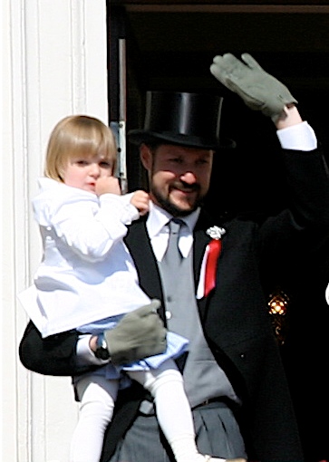 2004년 4월 17일 오슬로 왕궁 예배당에서 군나르 스톨세트 주교에게 세례를 받았다. 대부모는 할아버지, 고모 마르타 루이세 공주, 프레데리크 10세 덴마크 국왕, 스웨덴 왕세녀, 펠리페 6세 스페인 국왕, 외할머니 마리트 테셈이었다.[4] 덴마크 왕세자와 아스투리아스 왕자는 세례식 한 달 안에 각각 결혼식이 예정되어 있어 참석하지 못했다.[5]
