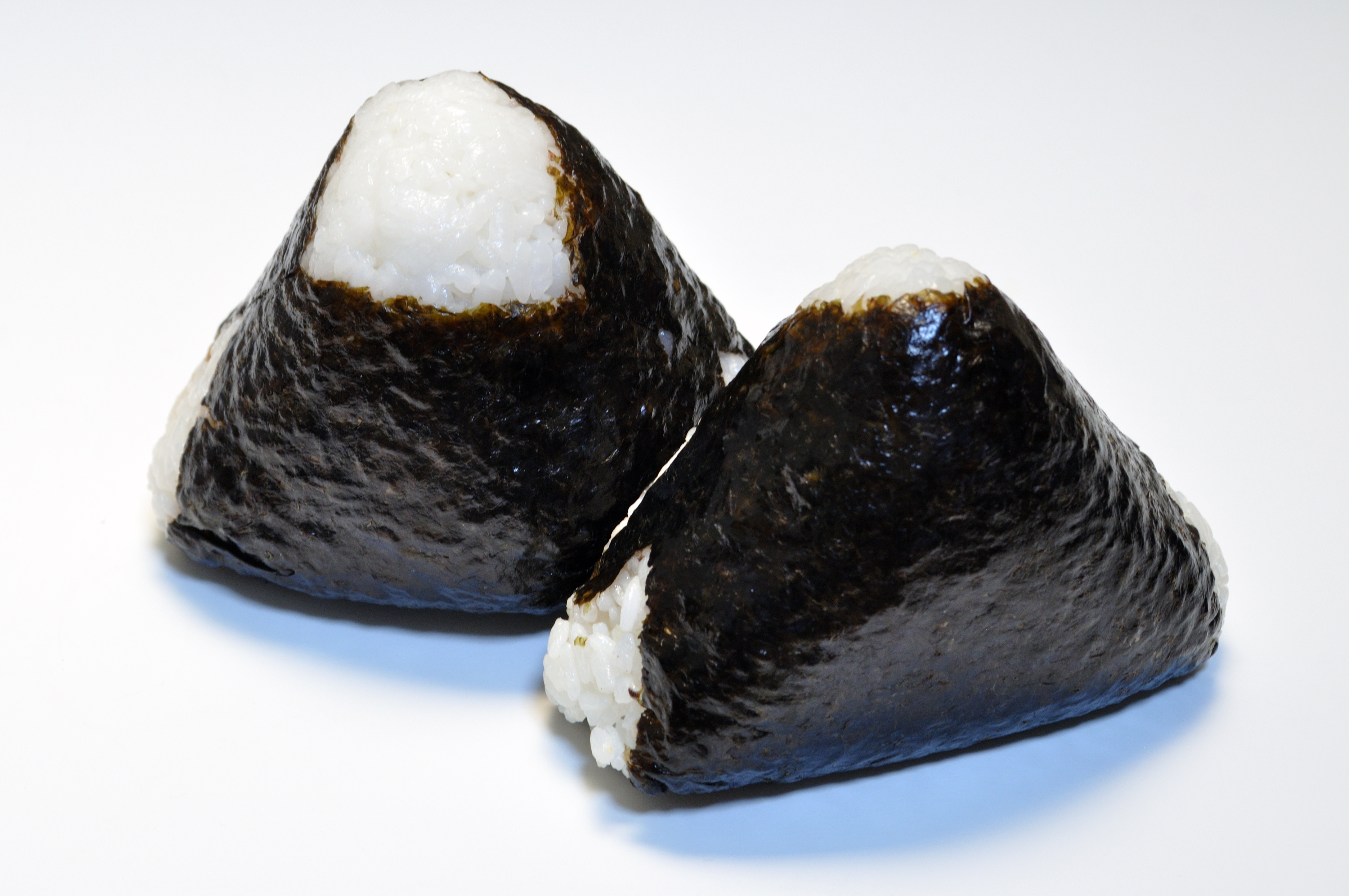 일본 쌀을 짓고 식초와 설탕으로 간을 한 후 둥글거나 삼각형 모양으로 만든 밥을 김으로 감싸서 만든다. 연어, 참치, 절인 채소 등 다양한 재료를 넣어 만들 수 있다. 이동 중에도 먹기 편리하며, 일본의 편의점, 슈퍼마켓, 포장마차 등에서 흔히 판매된다. 소풍에 가져가거나 가벼운 점심으로 즐기기에도 좋다.