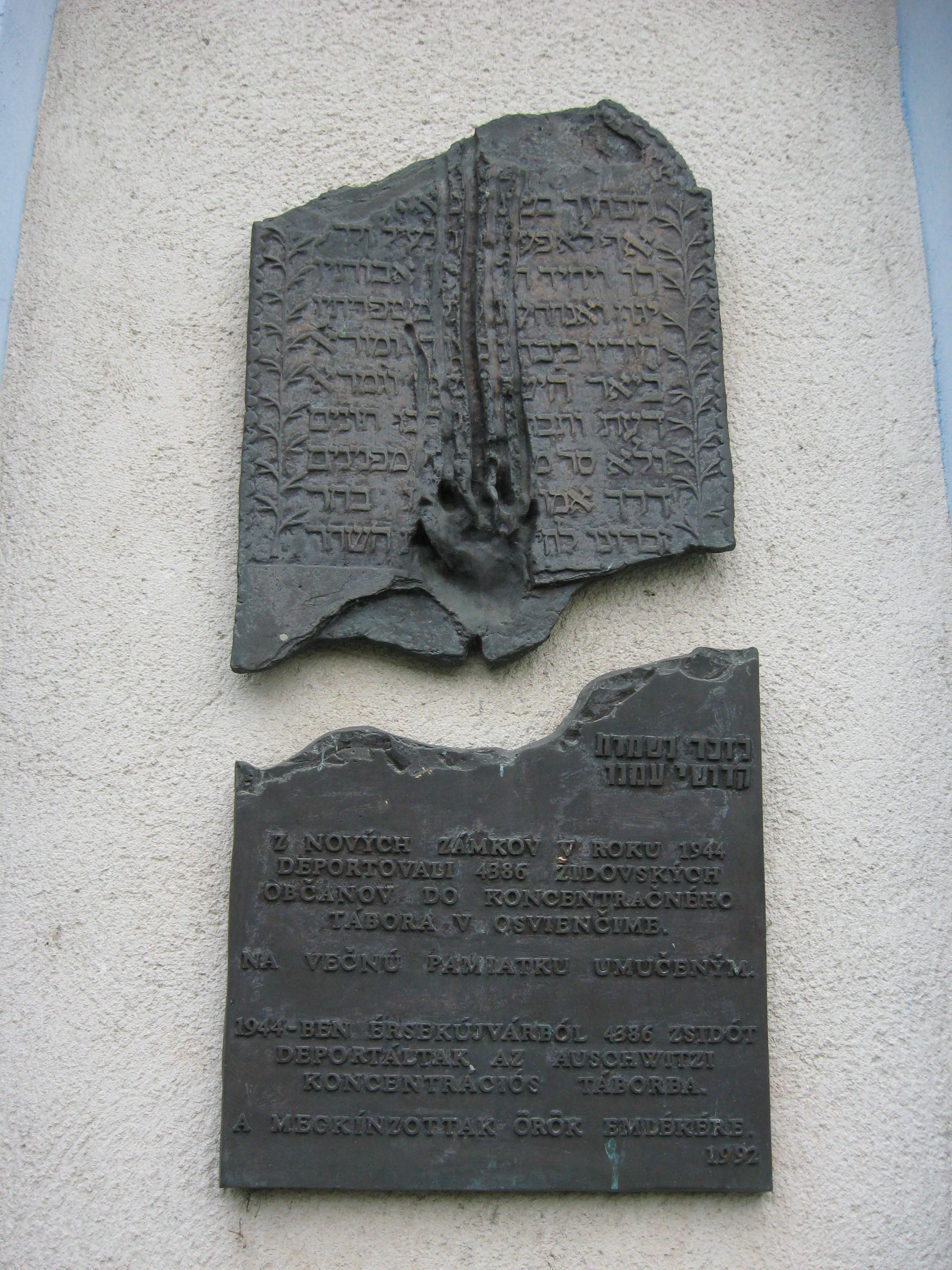제2차 세계 대전 중 1944년 3월 19일, 독일군이 헝가리를 점령하면서 같은 해 7월부터 유대인에 대한 홀로코스트가 시작되었다. 19세기부터 노베 잠키의 노비치 잠코치 지구(Nových Zámkoch)에는 큰 유대인 공동체가 있었고, 그들은 요새로 모였다. 약 4800명의 유대인 주민 중 4386명이 아우슈비츠 강제 수용소에서 살해되었다. 주변 마을에서도 유대인들이 모여들어, 각지의 수용소로 철도를 통해 운송되었다.