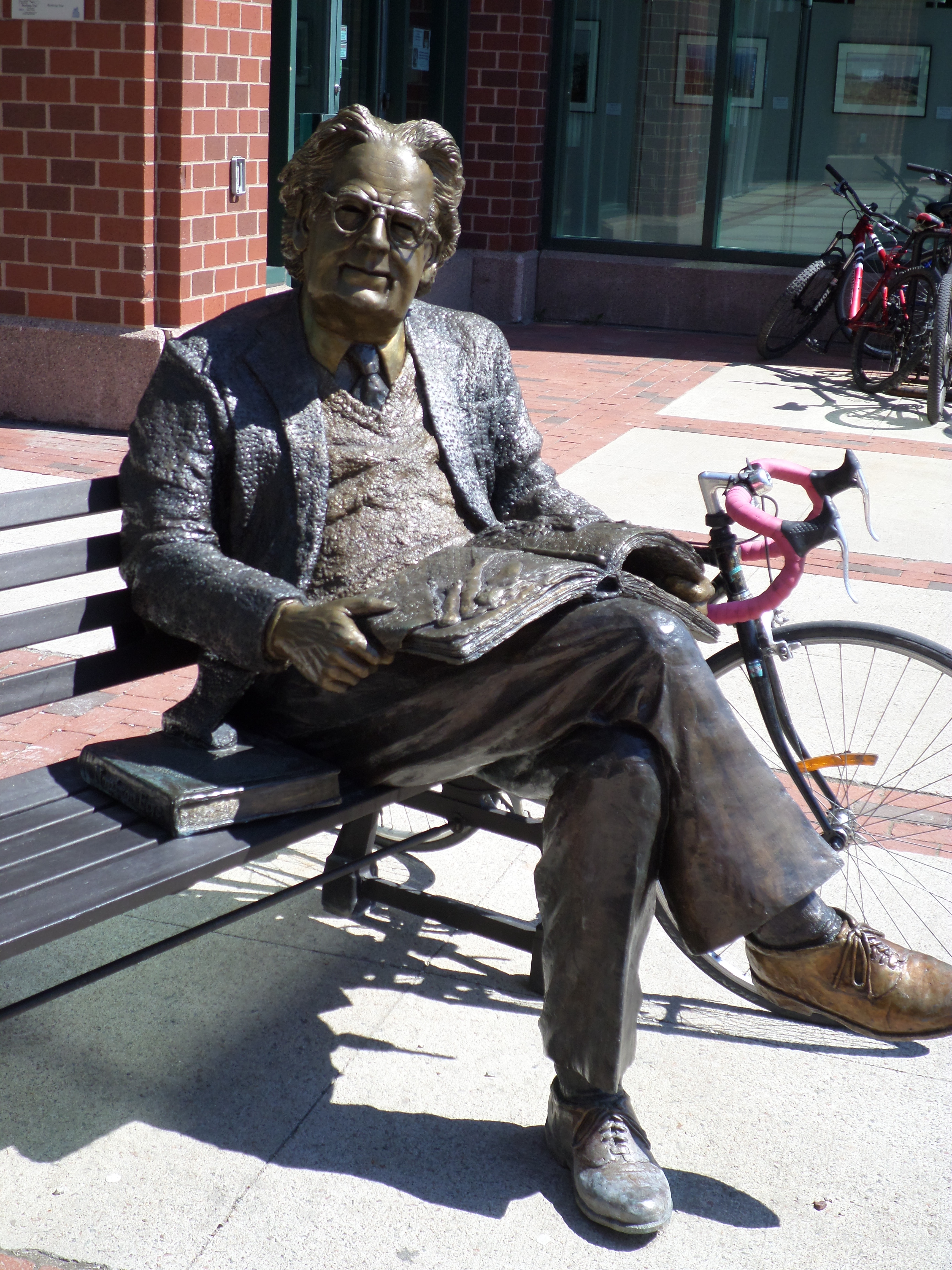 몬턴 공공 도서관 입구 밖 프라이 동상(블루 크로스 센터)과 몬턴의 노스럽 프라이 학교는 그의 이름을 따서 명명되었다. 동상에는 프라이가 몬턴 공공 도서관 입구 밖 공원 벤치에 앉아 있는 모습이 묘사되어 있다.[24] 예술가 대런 바이어스와 프레드 해리슨이 제작한 이 동상과 벤치의 다른 주물은 토론토 대학교 빅토리아 칼리지에 설치되어 있다.[25]