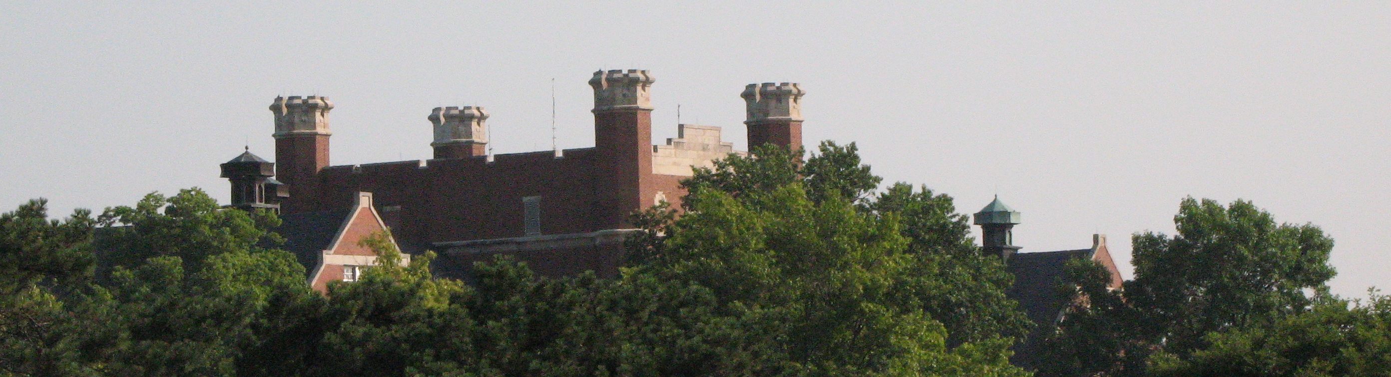 중앙 탑의 디자인을 가진 컬리지 고딕 구조는 테터셜 성을 연상시키며, "진실이 너희를 자유롭게 하리라"라는 모토가 돌에 새겨져 캠퍼스를 굽어본다. 이 디자인 때문에 "타워"라는 용어가 캠퍼스 전체에서 자주 사용되며, 학교 연감의 이름이기도 하다. 건물 공사는 1906년에 시작되어 1910년 10월 3일에 수업이 시작될 때까지 간헐적으로 진행되었다. 메리빌 건물 기록 건축가는 존 H. 펠트이다. 1919년 3월 15일, 토네이도가 강당 지붕을 뜯어내고 창문 대부분을 날려 버렸다.[11]