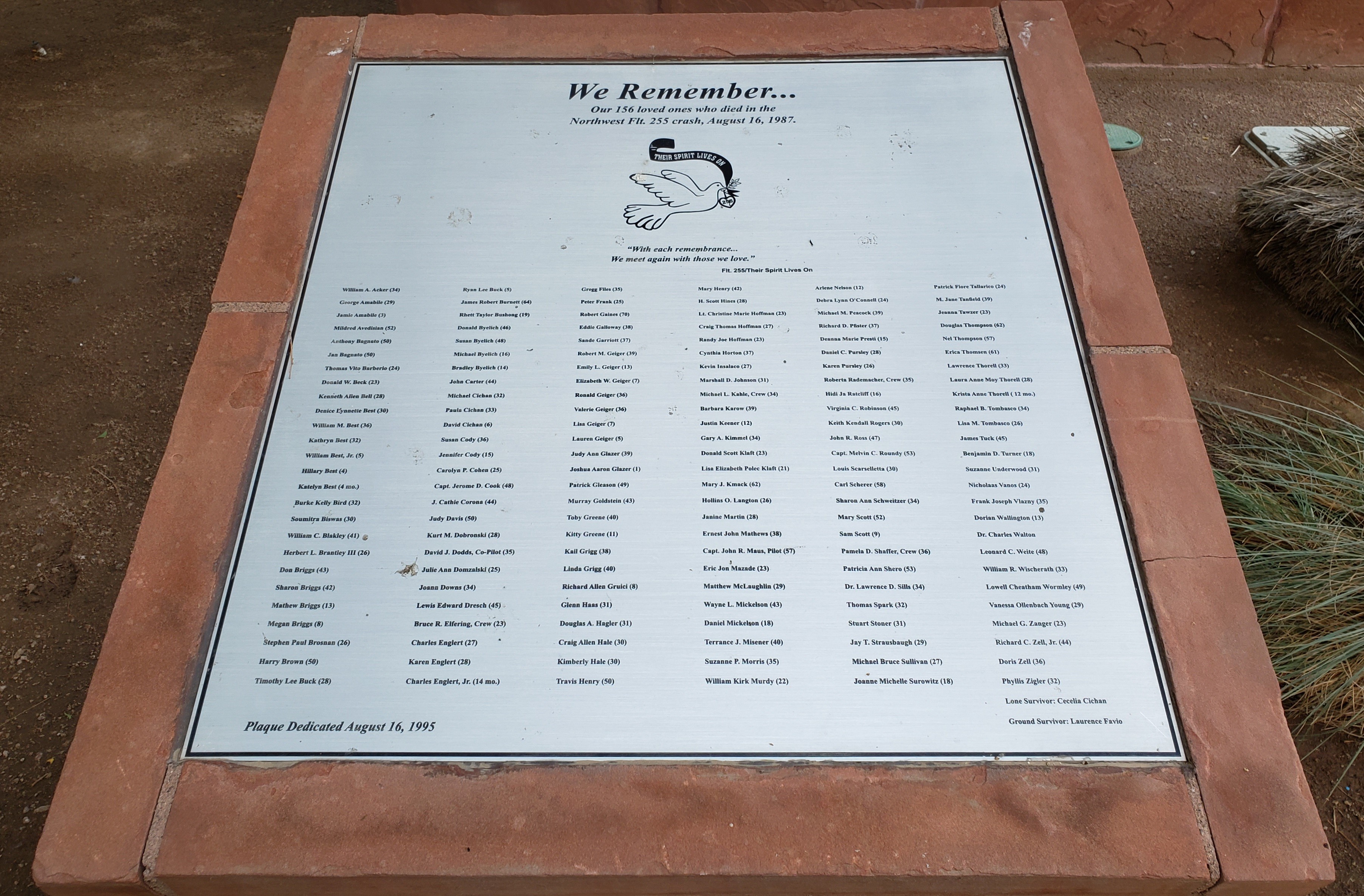 2007년 8월 16일, 사고 20주년 위령제가 디트로이트에서 열렸다. 사고 이후 유족들이 현장에 돌아온 것은 처음이었다.