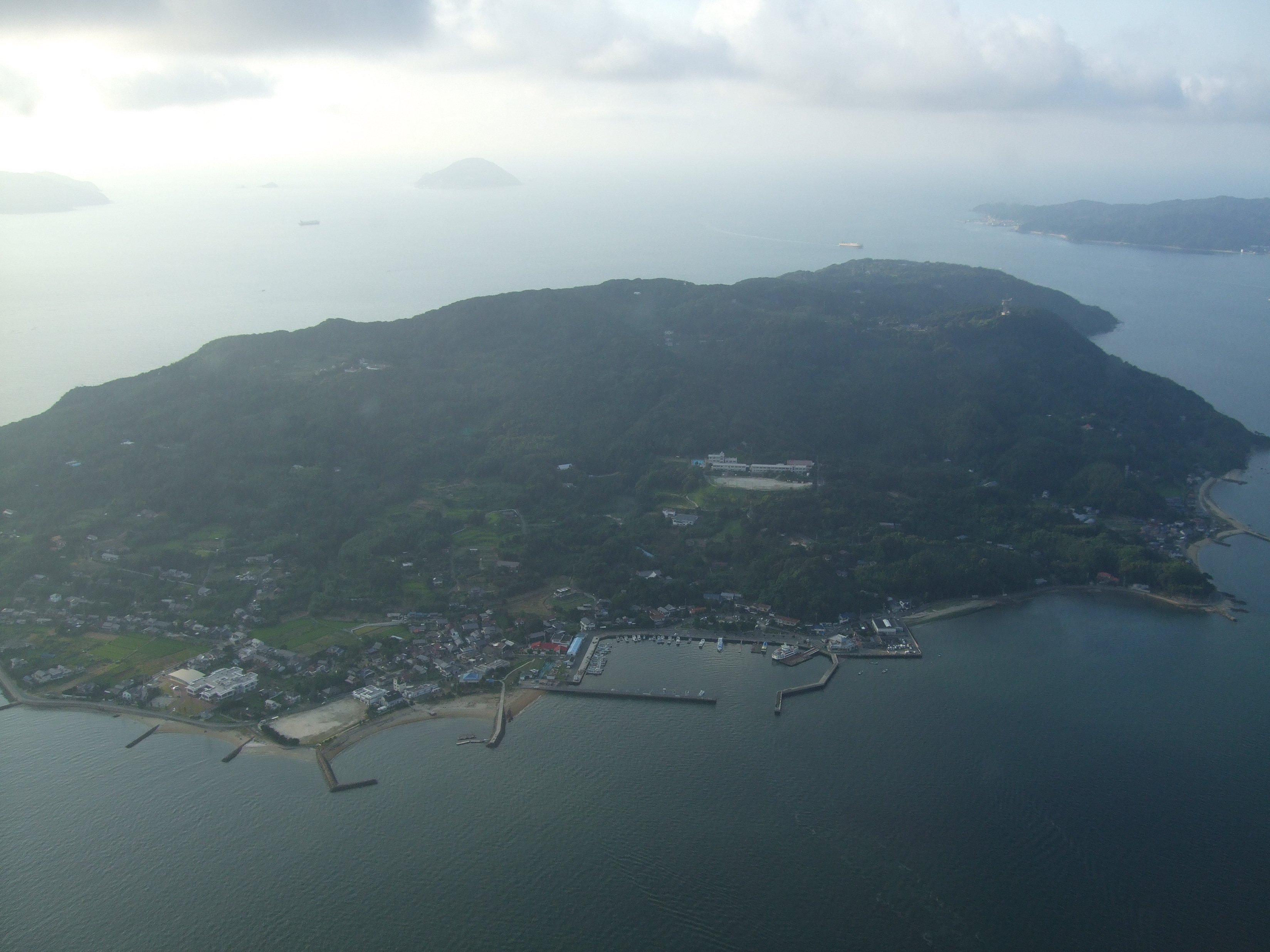 섬 남동부의 고지대에 위치한 기타우라 유적과 섬 남부의 니시 유적에서는 야요이 시대 전기 말부터 중기 전엽의 야요이 토기가 발견되었다.