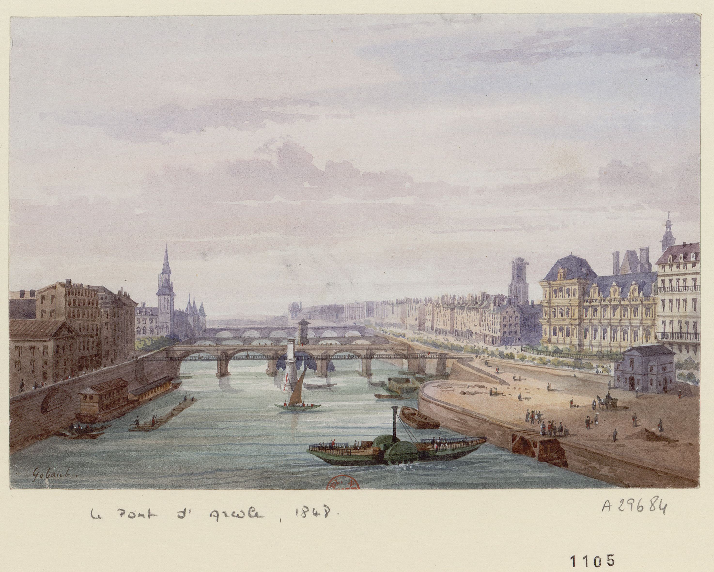 1856년, 색맹 예술가 샤를 메리옹은 "노트르담 다리 아치"(L'Arche du pont Notre-Dame)를 새겼다.