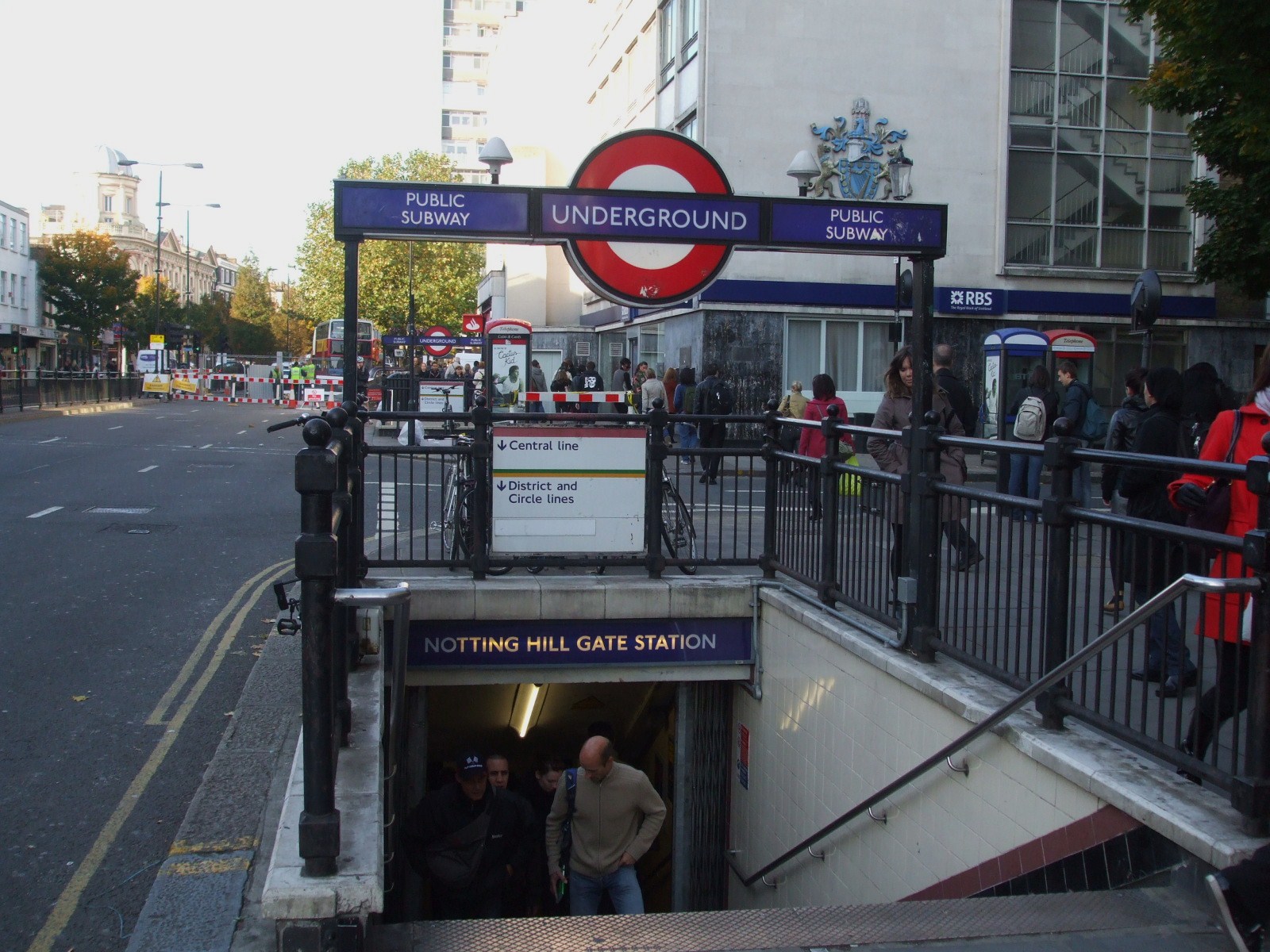 노팅힐 게이트역은 센트럴선, 디스트릭트선, 서클선이 지나는 주요 환승역이다. 1950년대 재개발 과정에서 완전히 지하로 이전되어 지상과 지하 노선 간의 환승 편의를 제공한다.3. 2. 런던 버스