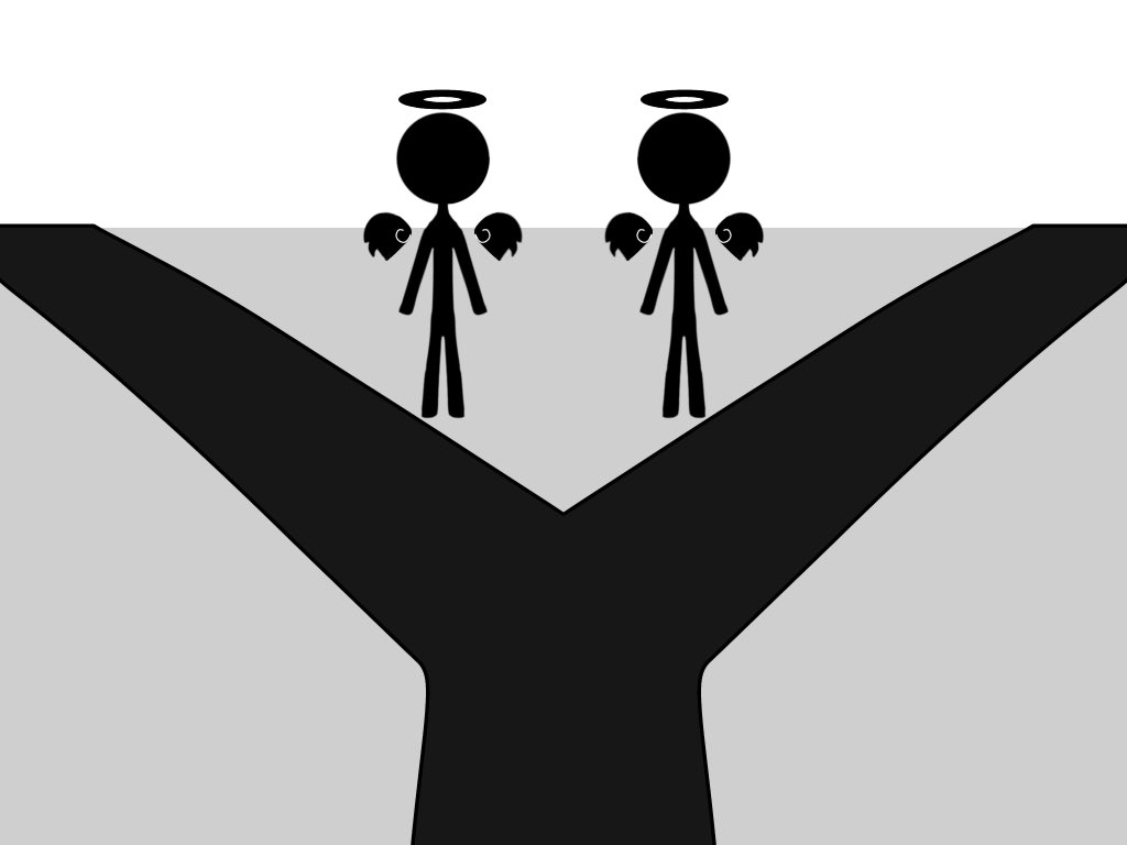 ::::* 진짜 천사가 다른 한 명을 천사라고 생각하는 경우 (실제로는 악마), 문지기에게 '''" '이 길이 천국으로 가는 길입니까?'라고 제가 당신에게 묻는다면, 당신은 'Yes'라고 대답하시겠습니까?"'''라고 질문하면 됩니다.