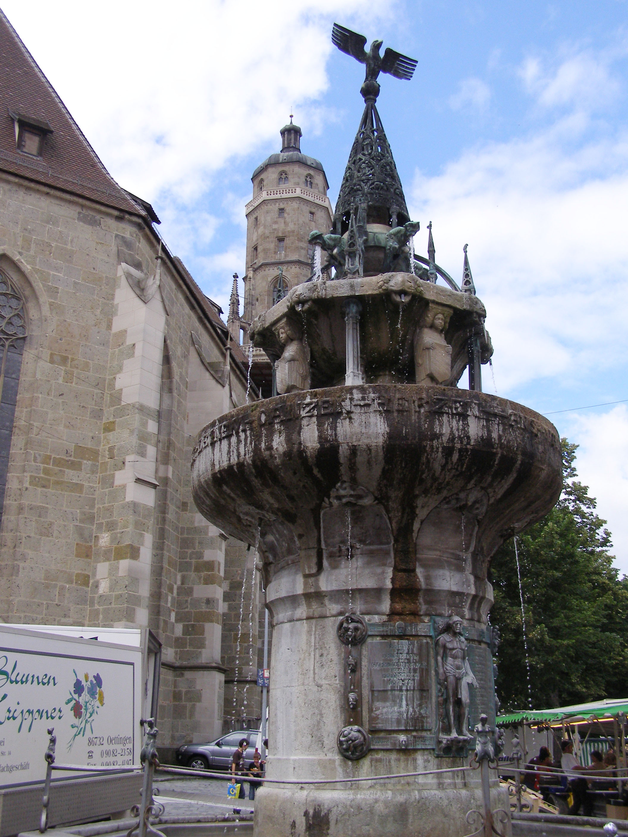 1238년, 화재로 뇌르틀링겐의 많은 부분이 파괴되었지만, 도시는 빠르게 회복되었다. 3세대 후, 많은 수의 장인, 특히 무두장이와 직조공이 도시 성벽 밖으로 정착했다. 1327년에는 오늘날의 원형 벽이 건설되어 도시의 성벽 부분의 크기가 4배로 늘어났다. 1427년에는 성 게오르크 교회 건설이 시작되었다.