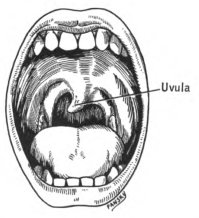 손상된 설인 신경(IX)은 목젖이 영향을 받은 쪽으로 벗어나게 할 수 있다.