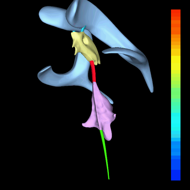4개의 뇌실과 연결부를 회전하는 3D 렌더링