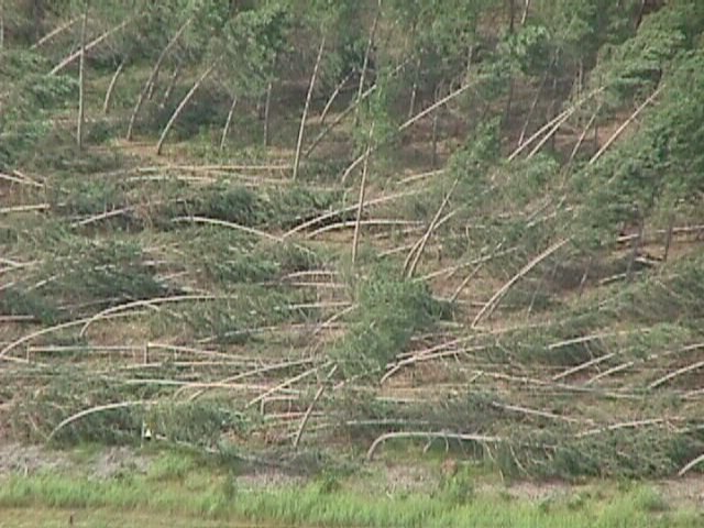 돌풍선은 강한 뇌우가 길게 늘어선 형태로, 한랭전선을 따라 또는 그 앞쪽에 형성될 수 있다.[24][25] 20세기 초에는 한랭전선의 동의어로 사용되었다.[26] 돌풍선에는 강한 강수, 우박, 빈번한 낙뢰, 강한 직선풍이 있으며, 경우에 따라 토네이도와 수상스프라우트가 발생할 수 있다.[27] 돌풍선 자체가 활 모양 에코 형태일 경우, 가장 튀어나온 부분에서 강한 직선풍 형태의 강한 기상 현상이 예상된다.[28] 토네이도는 중규모 저기압이 있는 선 에코 파동 패턴(LEWP)의 파동을 따라 나타날 수 있다.[29] 여름철 일부 활 모양 에코는 데레초로 불리며, 광범위한 지역을 매우 빠르게 이동한다.[30] 성숙한 돌풍선과 관련된 강우 지역의 후면 가장자리에는 후면 저기압이 형성될 수 있는데, 이는 일반적으로 강우 캐노피 아래에 있는 중규모 고기압계 뒤에 형성되는 중규모 저기압계이며, 때때로 열폭풍과 관련이 있다.[31] 이러한 폭풍은 중국 남부에서는 "석호풍"(石湖风|shí hú fēng중국어)으로도 알려져 있다.[32]3. 4. 슈퍼셀 뇌우