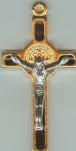 메달 뒷면은 십자가가 중심을 이룬다. 십자가의 세로대에는 "''Crux Sacra Sit Mihi Lux''" ("거룩한 십자가여, 나의 빛이 되소서!")의 머리글자인 '''CSSML'''이, 가로대에는 "''Non Draco Sit Mihi Dux''" ("용(악마)이 나의 인도자가 되지 않게 하소서!")의 머리글자인 '''NDSMD'''가 새겨져 있다. 십자가 네 각의 안쪽에는 "''Crux Sancti Patris Benedicti''" ("우리의 거룩한 아버지 베네딕토의 십자가")의 머리글자인 '''CSPB'''가 있다. 십자가 위에는 대부분 평화를 뜻하는 라틴어 단어 '''PAX''' 또는 그리스도 문자 '''IHS'''가 새겨져 있다. 메달 뒷면 가장자리에는 구마 기도문인 "''Vade Retro Satana, Nunquam Suade Mihi Vana''" ("사탄아, 물러가라! 헛된 것을 나에게 권유하지 마라!")의 머리글자인 '''VRSNSMV'''와 "''Sunt Mala Quae Libas. Ipse Venena Bibas''" ("네가 내게 권하는 것은 악한 것이니, 그 독잔은 너나 마셔라")의 머리글자인 '''SMQLIVB'''가 새겨져 있다.[57][27]