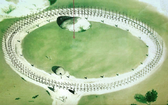 토루 주변에는 원형으로 된 거석들이 배치되어 있다. 원래 35개였을 것으로 추정되는 거석 중 12개가 남아 있다. 대부분의 고고학자들은 이 거석들이 원래 기념물이 의식 중심지로서 버려진 지 수세기 후인 청동기 시대에 후대에 추가된 것이라고 주장한다. 하지만 이러한 견해는 논란의 여지가 있으며, 후대의 목재 기둥 원과 교차하는 거석 배치에 대한 탄소 연대 측정 결과와 관련이 있다. 즉, 문제의 돌이 옮겨졌다가 나중에 원래 위치에 다시 설치되었을 수 있다는 이론이다.