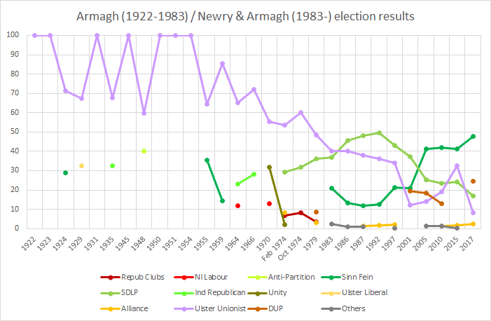 2010년, 2015년, 2017년, 2019년 총선에서 모두 신 페인 후보가 당선되었다. 특히, 2017년 총선에서는 신 페인의 미키 브래디 후보가 47.9%의 득표율로 당선되었는데, 이는 2015년 총선 대비 6.8% 증가한 수치이다.[26]