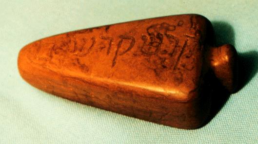 1860년 11월에 발견된 두 번째 유물로, 십계명의 축약된 내용이 히브리어로 새겨져 있다. 터번과 로브를 착용한 남자(모세로 추정)의 형상이 새겨져 있다.[6] 사용된 히브리어는 고대 후기 유배 사각 히브리 문자의 형태를 띠고 있으며, 이는 현대 히브리 알파벳의 파생된 것으로 밝혀졌다.[7]