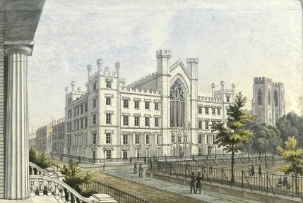 1831년, 당시 재무장관이었던 앨버트 갤러틴(Albert Gallatin) 등의 지원을 받아 뉴욕 시립대학교(New York City University)로 설립되었다.[283] 갤러틴 등은 시민들이 쉽게 접근할 수 있는 곳에 충실한 교육 환경을 갖추어야 할 필요성을 주장했고, 이에 따라 맨해튼 중앙부에 캠퍼스가 자리 잡게 되었다. 1896년 현재의 명칭으로 변경되었다.[283]