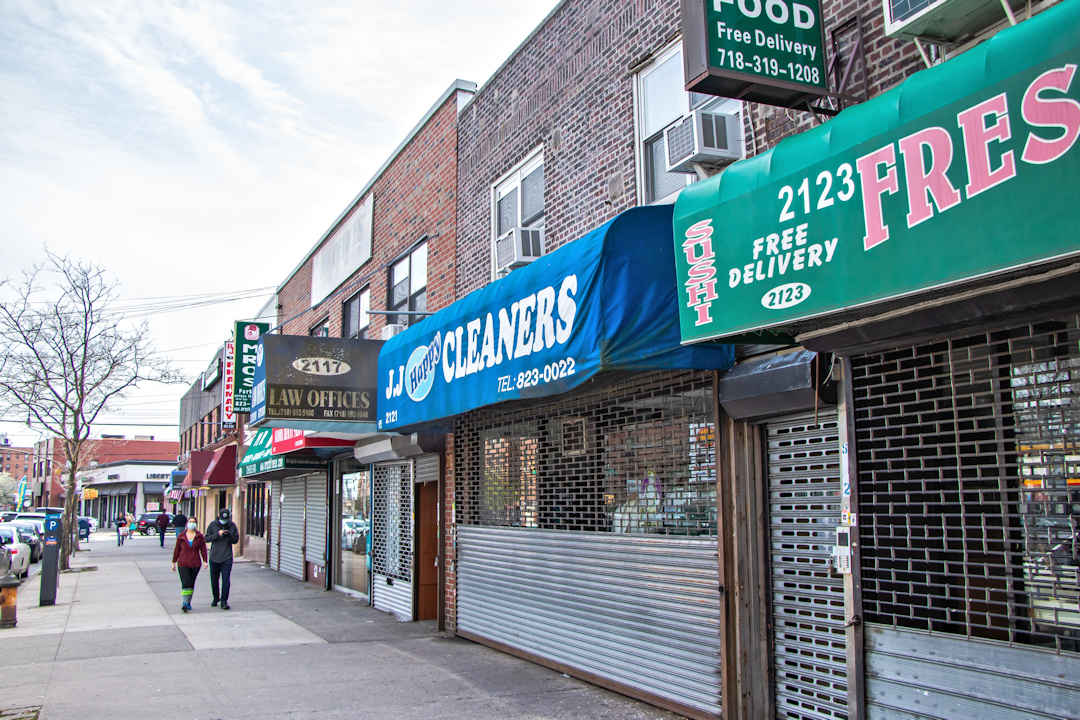 3월 20일, 뉴욕 주정부는 불필요한 사업체 폐쇄 명령을 내렸다. 뉴욕의 대중교통 시스템은 유지되었으나, 서비스 감소와 노숙자 증가로 혼잡이 심화되었다.[293]
