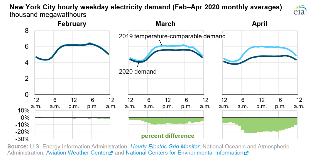 4월까지 수십만 명의 뉴욕 시민들이 일자리를 잃었고, 특히 소매, 운송, 식당 분야의 저소득 일자리가 큰 타격을 받았다. 세수 감소는 수십억 달러로 예상되며, 관광 수입 급락으로 시는 최대 100억 달러의 손실을 볼 수 있다.[294][295]