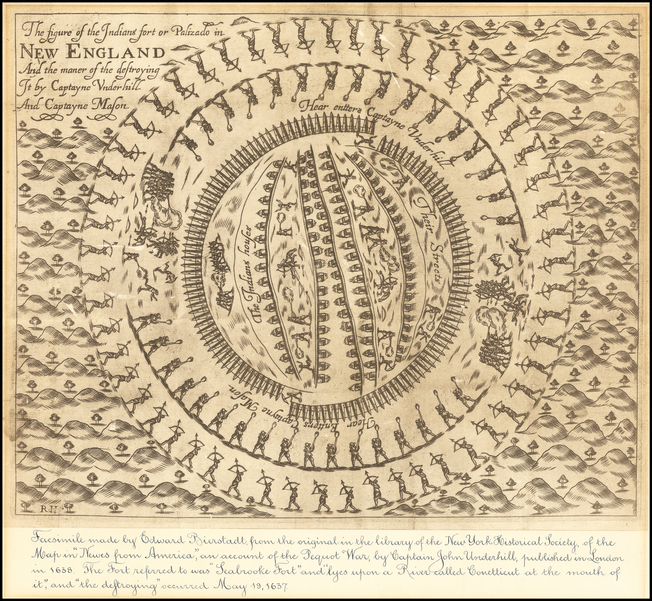 식민지 개척자들과 현지 원주민 부족들 사이에는 평화와 무력 충돌이 반복되었는데, 1637년 페쿼트 전쟁 중 미스틱 대학살이 가장 잔혹한 사건이었다.[22]