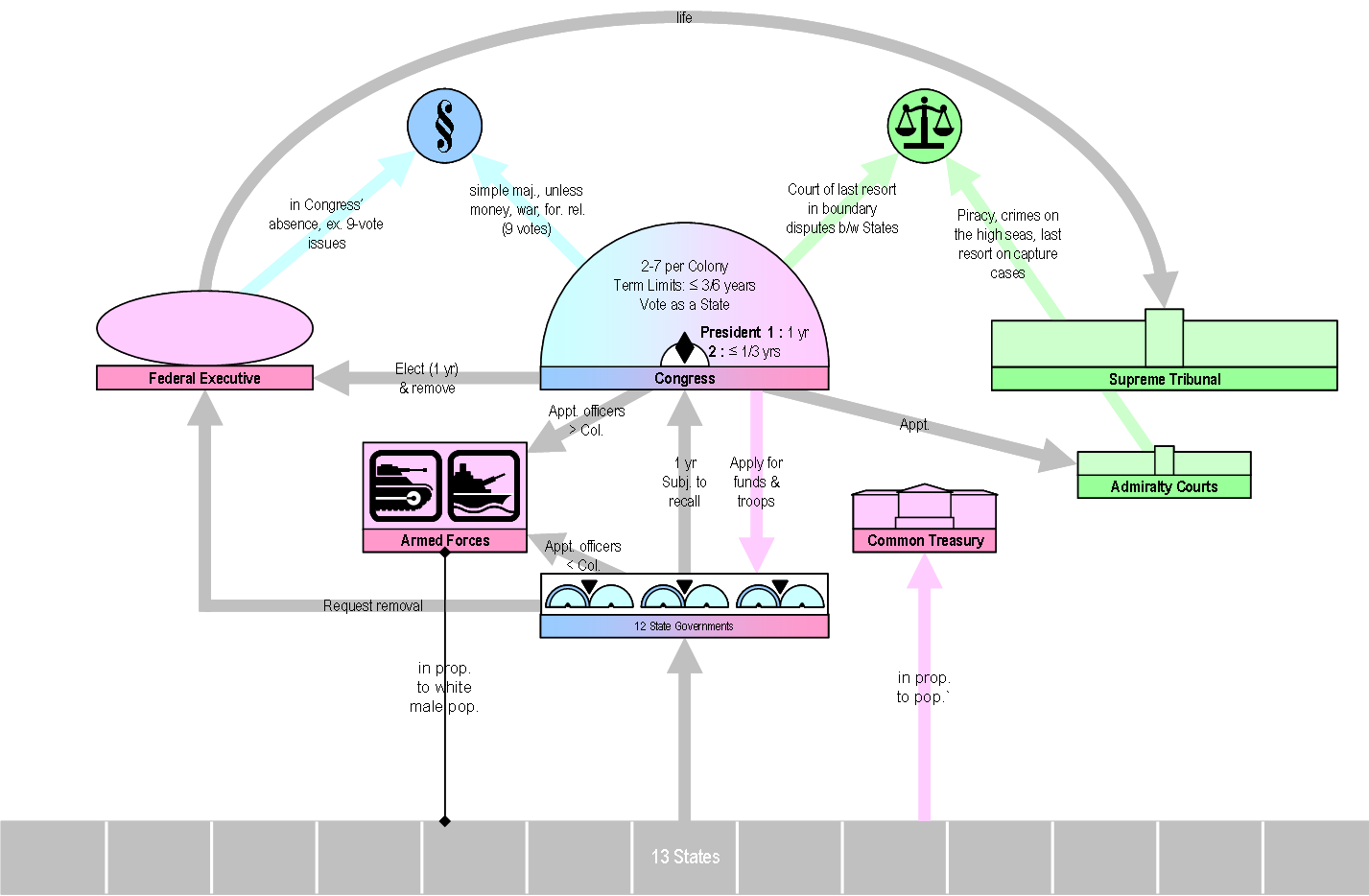 또한 주 정부가 규약을 지지하도록 선서해야 하며, 영토 분쟁 처리 정책,[13] 반역으로 간주되는 범죄를 정의해야 한다는 내용도 제안되었다.[14]