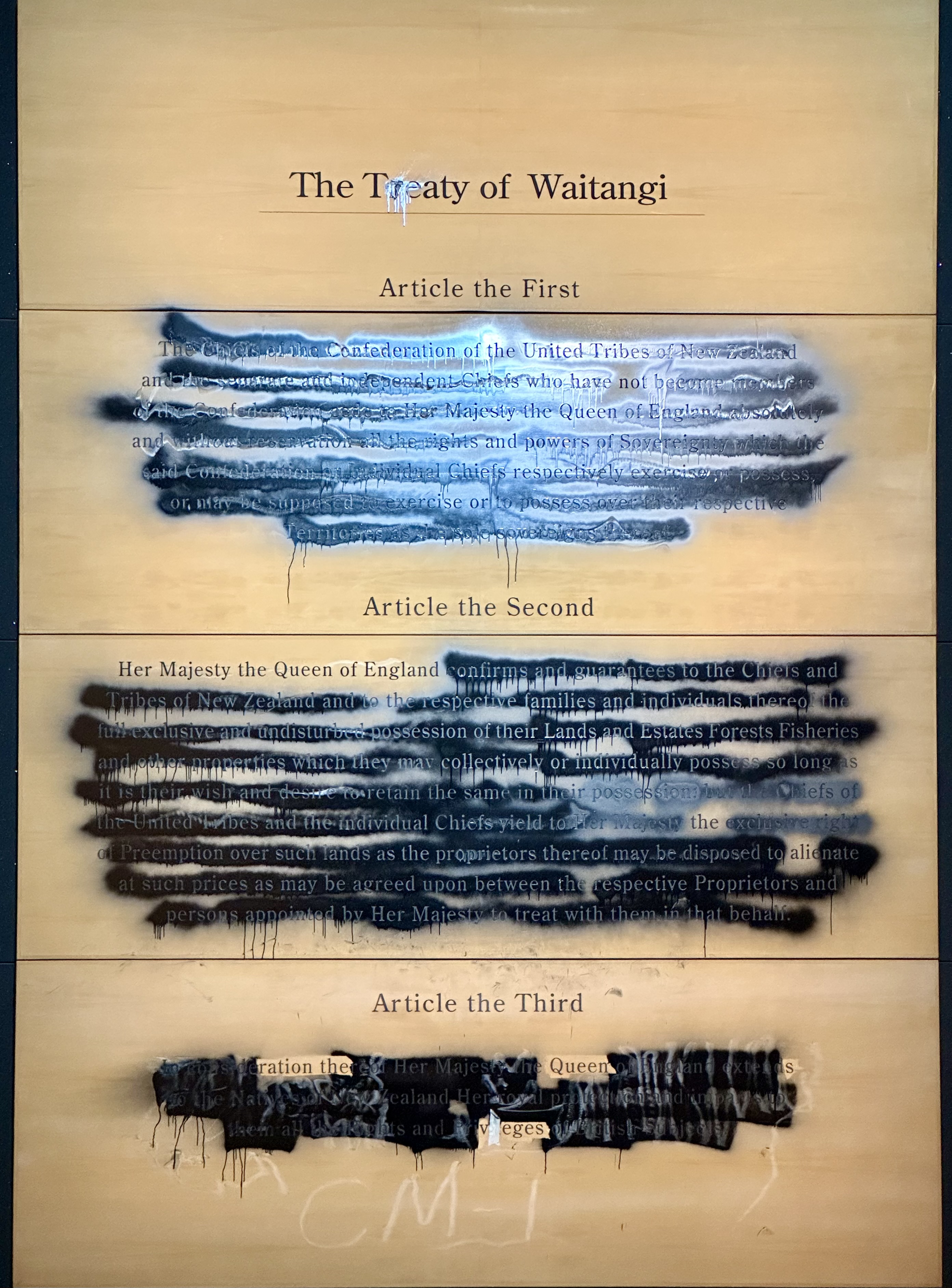 2023년 12월 11일, 테 파파 통가레와 박물관의 "국가의 징후: 와이탕이 조약" 전시에서 영어로 된 와이탕이 조약이 표시된 나무 패널이 테 와카 호루아(Te Waka Hourua)라는 단체의 시위대에 의해 스프레이 페인트와 앵글 그라인더로 파손되었다. 이들은 해당 패널이 조약의 번역본이라고 오도한다며 철거를 요구했고, 12명이 체포되었다. 박물관은 이들의 메시지를 인지하고 있으며, 전시물을 복구하고 파손된 패널은 2023-2024년 여름 동안 현재 상태로 전시할 것이라고 발표했다.[100]