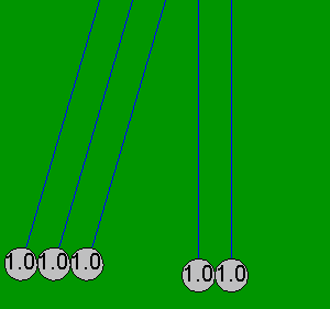 일반적인 형태 | 일렬로 늘어선 동일한 크기의 쇠구슬 |