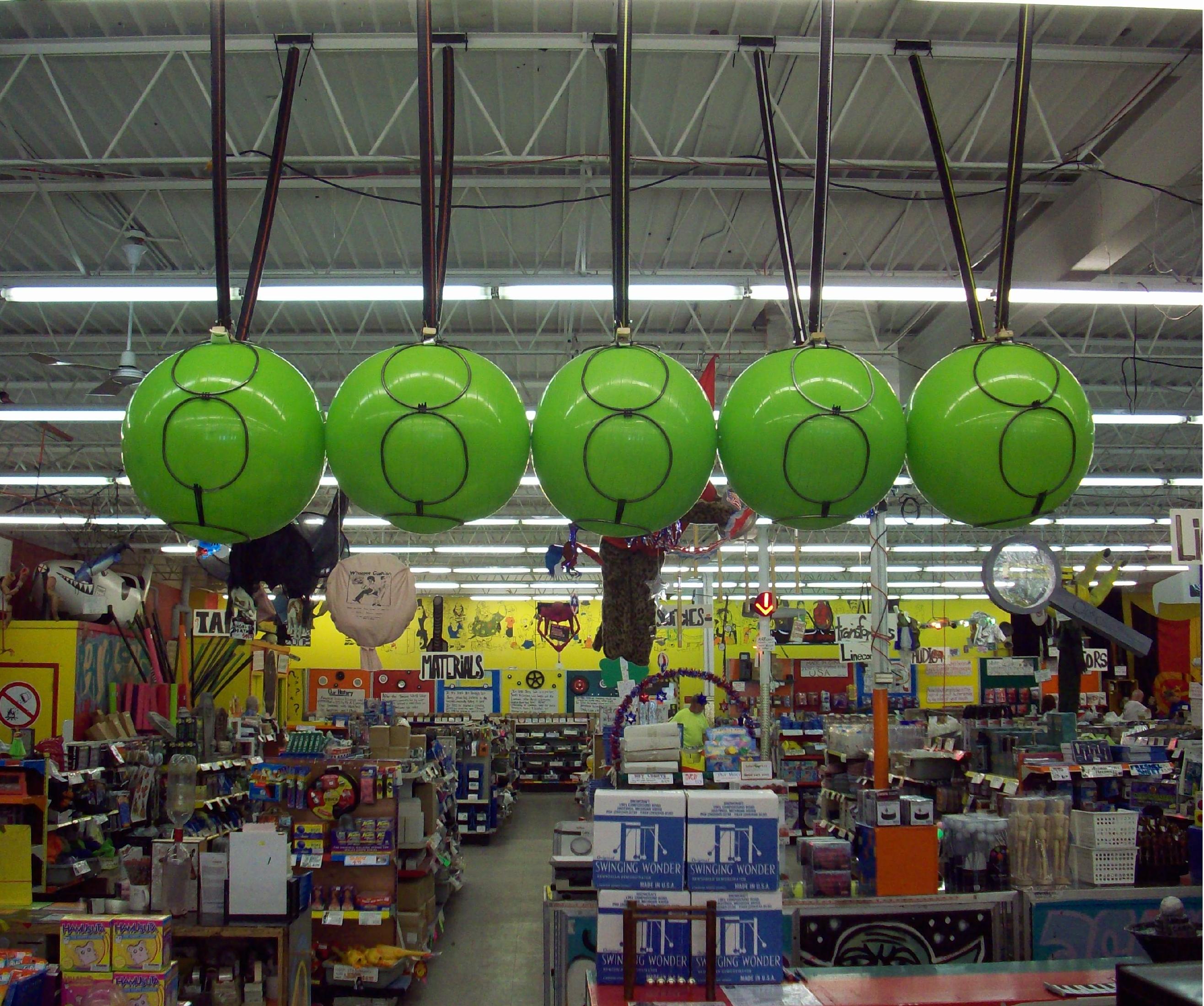가장 큰 직경의 충돌 볼을 가진 요람 장치는 위스콘신주 밀워키에 있는 소매점 American Science and Surplus에서 1년 이상 전시되었다(사진 참조). 각 볼은 직경 약 66.04cm의 공기를 주입한 운동용 볼(강철 링으로 덮여 있음)이었으며, 매우 강력한 자석을 사용하여 천장에 매달려 있었다. 유지 보수 문제로 인해 2010년 8월 초에 해체되었다.