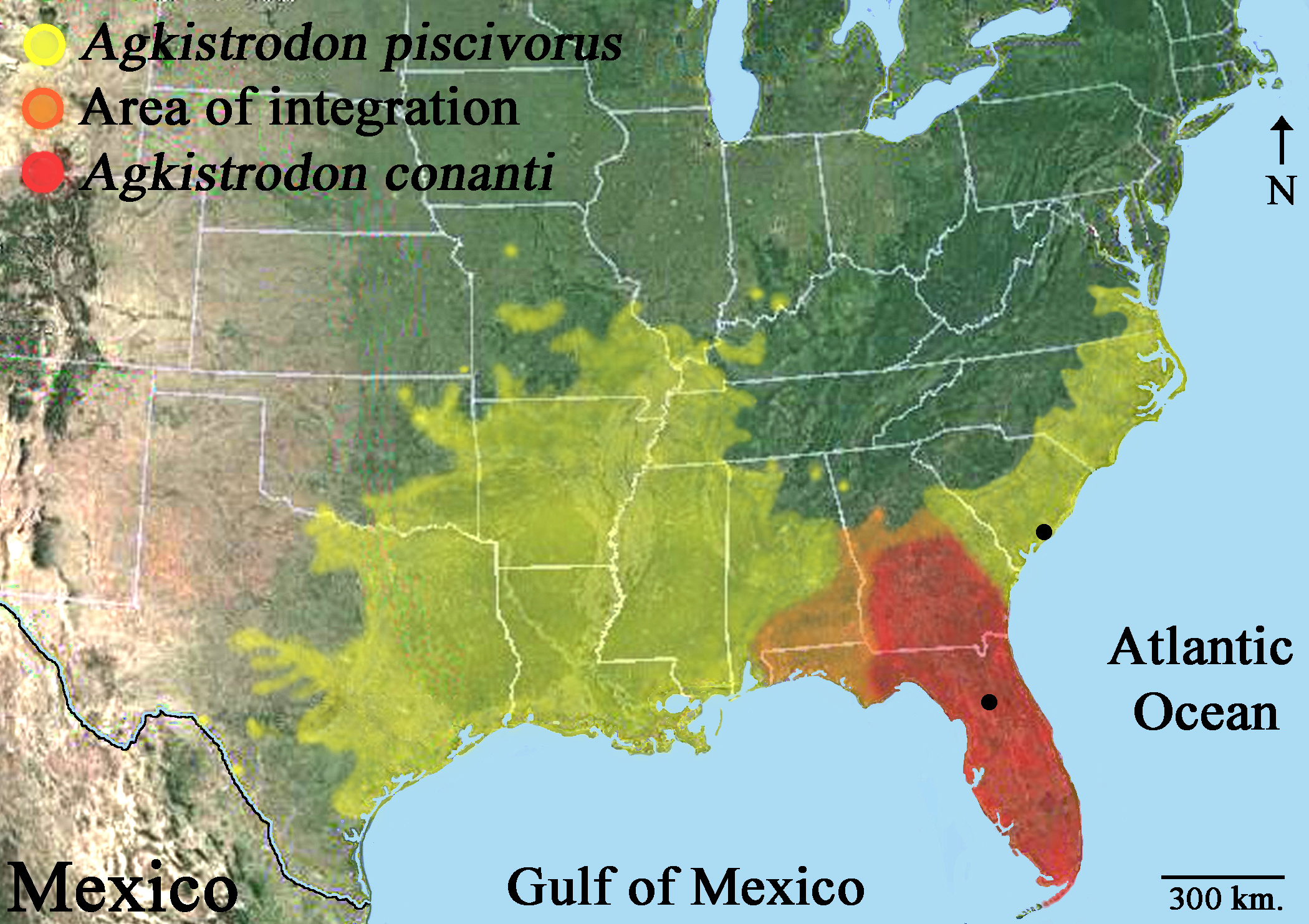 분포 | Agkistrodon piscivorus range.png |