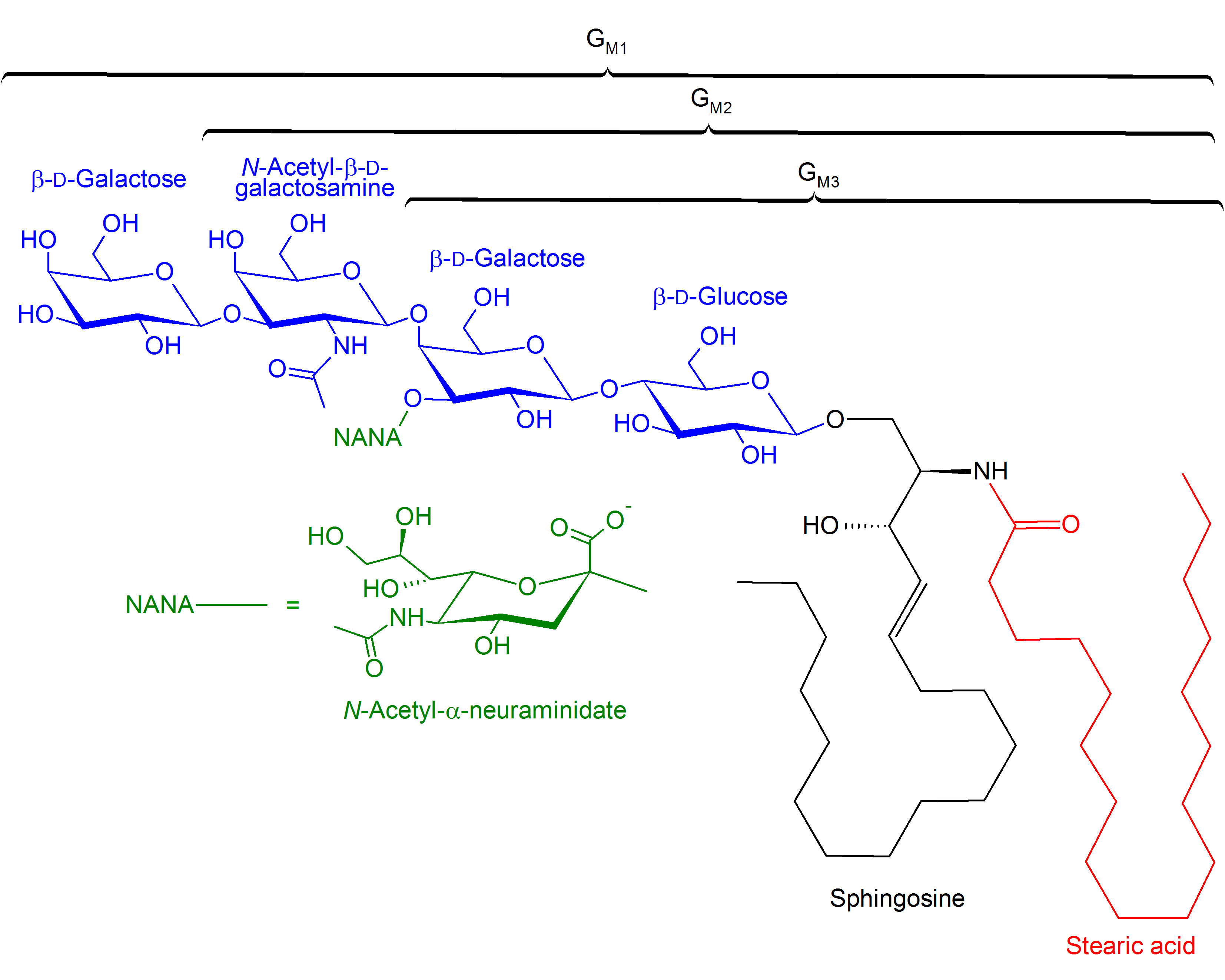 C형은 A형 및 B형과 병태가 다르다. 간이나 비장에서 스핑고마이엘린 외에 콜레스테롤이나 그 외의 당지질 등이 축적되며, 뇌에서는 특히 GM2, GM3 강글리오시드라고 불리는 당지질의 축적이 보인다.[72]