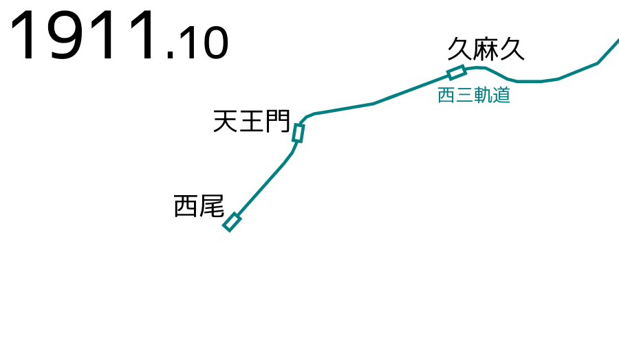 2008년 6월 14일 - 당역(역 구내는 단선) - 니시오역 간 약 600m를 복선화[6]。