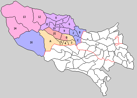 - '''고리촌'''(古里村): 고다마 촌, 오다마 촌, 우메자와 촌, 가와이 촌, 단자부로 촌, 다나자와 촌, 시라마루 촌 (현 오쿠타마정)