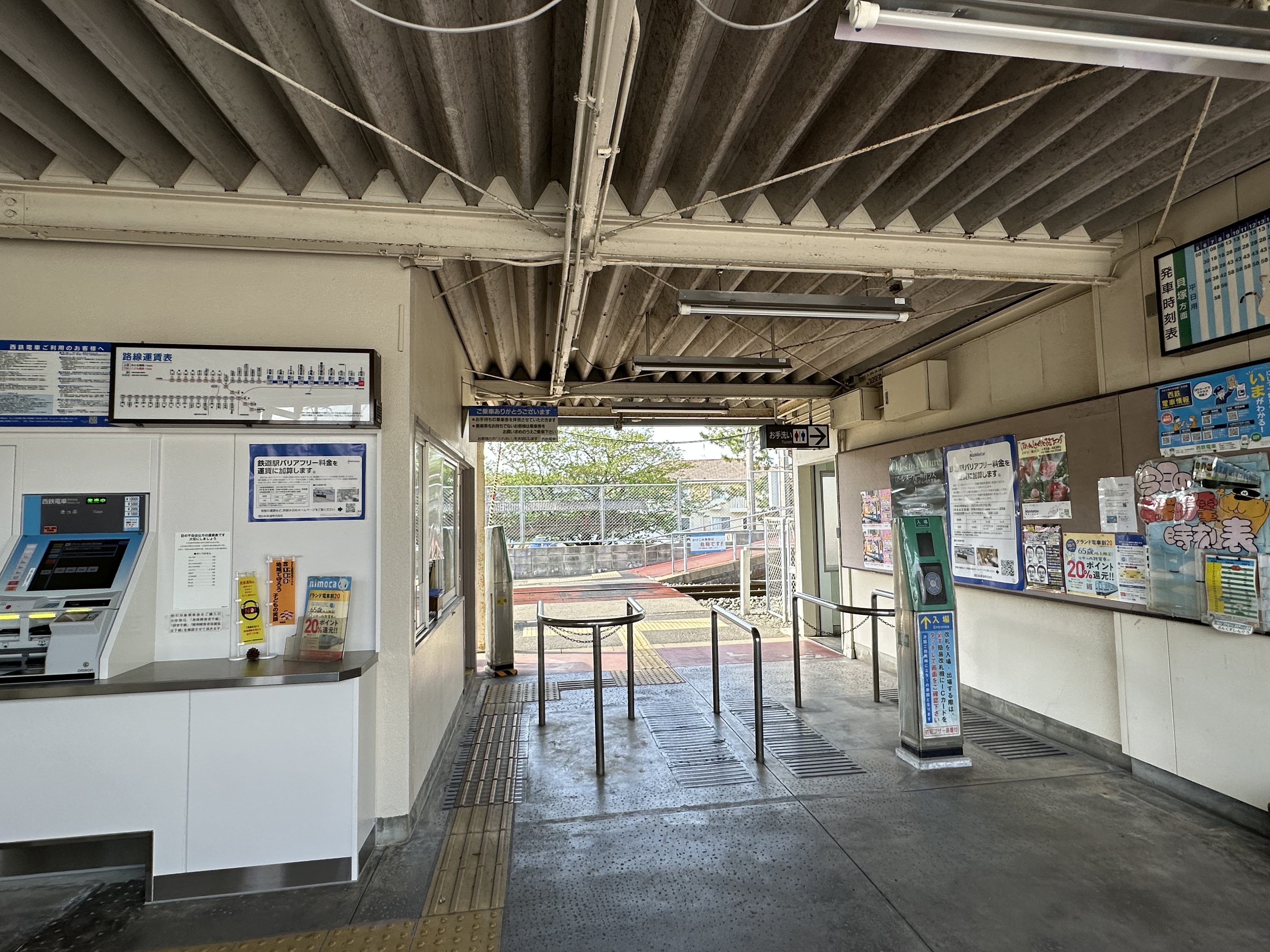 이 역은 지상에 있으며, 상대식 승강장 1개와 2개의 선로를 갖추고 있다. 건널목을 통해 역 건물과 연결되어 있으며, 역무원이 배치되어 있다.[1]섬식 승강장 1면 2선을 가진 지상역이다. 역사는 미토마 쪽에 있으며, 승강장과는 구내 건널목으로 연결되어 있다.