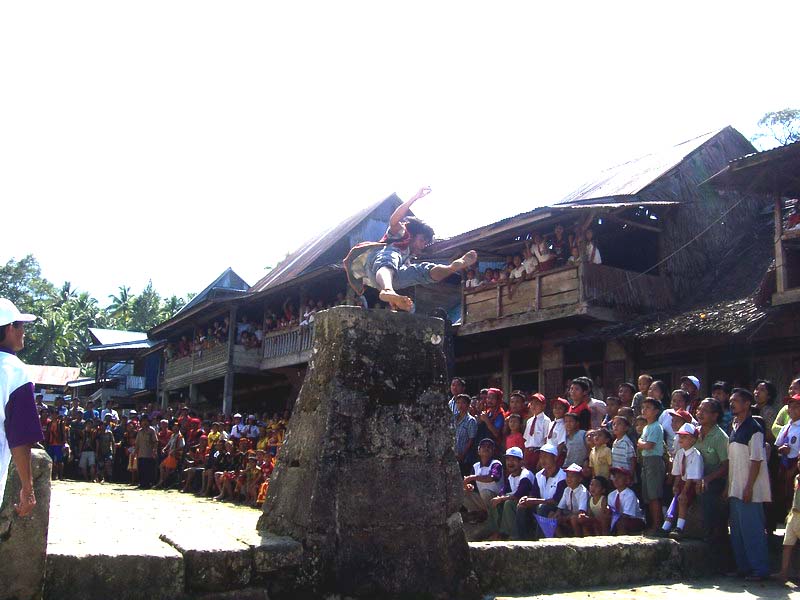 마을 안의 골목길은 돌로 포장되어 있으며, 많은 석조물이 배치되어 있다. 전통 가옥들은 일부가 관광지화되어, 2m 정도의 돌 받침대를 뛰어넘는 점핑 스톤과 전사의 춤 등을 주요 볼거리로 하고 있다. 점핑 스톤은 1000루피아 지폐의 그림에도 사용되었다.