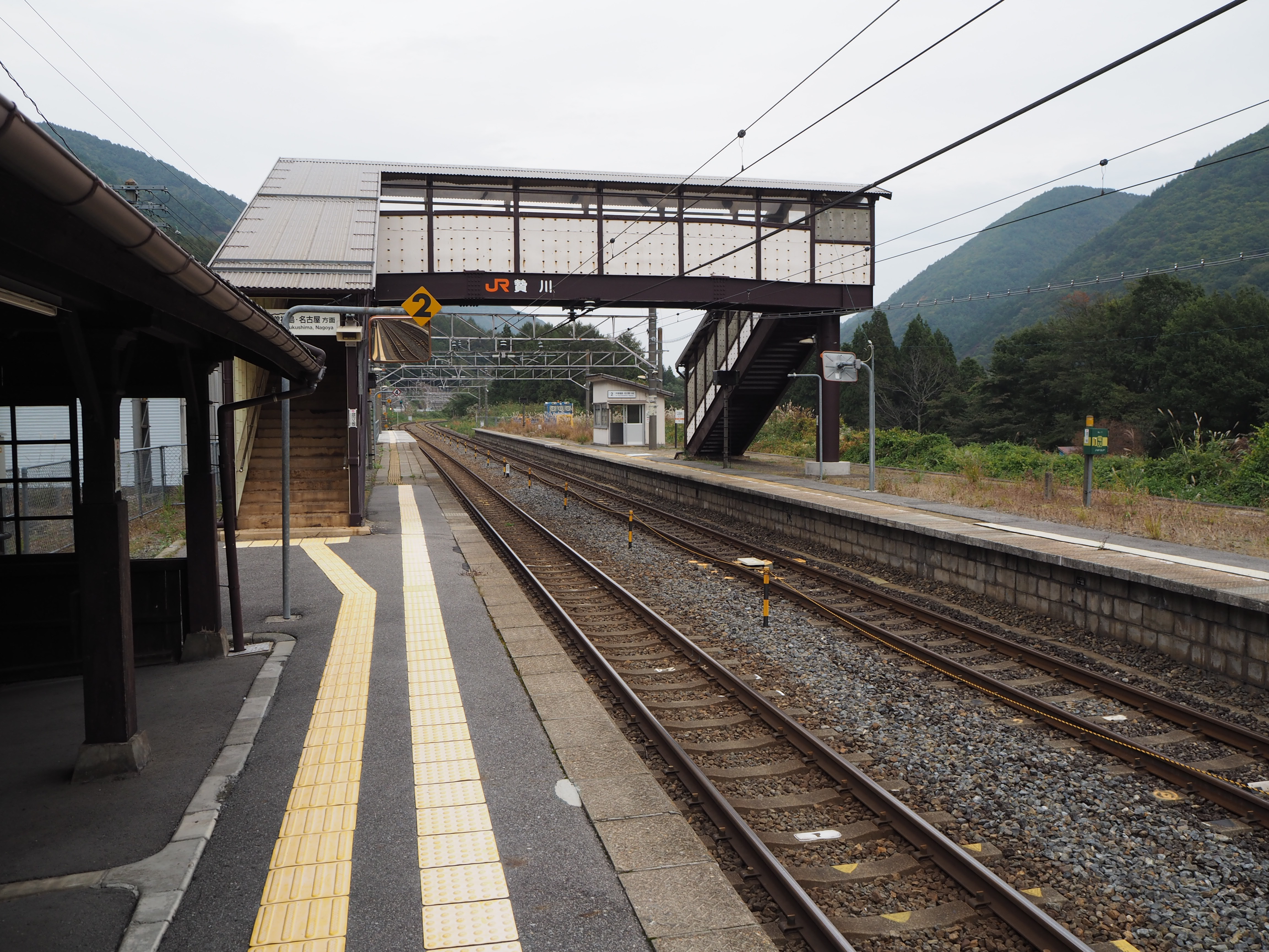나라이역은 1909년 개업한 일본 주오 본선의 지상역으로, 목조 건물에 단선 및 섬식 승강장을 갖추고 있으며, JR 도카이 역 중 해발고도가 가장 높은 곳에 위치한다. - 1909년 개업한 철도역 - 부강역