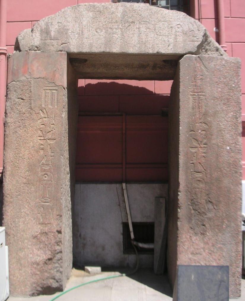 직사각형 법정의 서쪽 끝에는 태양신 라의 상징인 거대한 오벨리스크가 있었다. 경사진 측면과 사각형 상단을 가진 받침대 위에 세워졌는데, 잘린 피라미드와 같았으며, 높이가 20m였고, 석회암과 붉은 화강암으로 기저부를 둘러쌌다. 꼭대기에 있는 오벨리스크는 또 다른 높이 36m였으며, 전체가 석회암으로 만들어졌다.