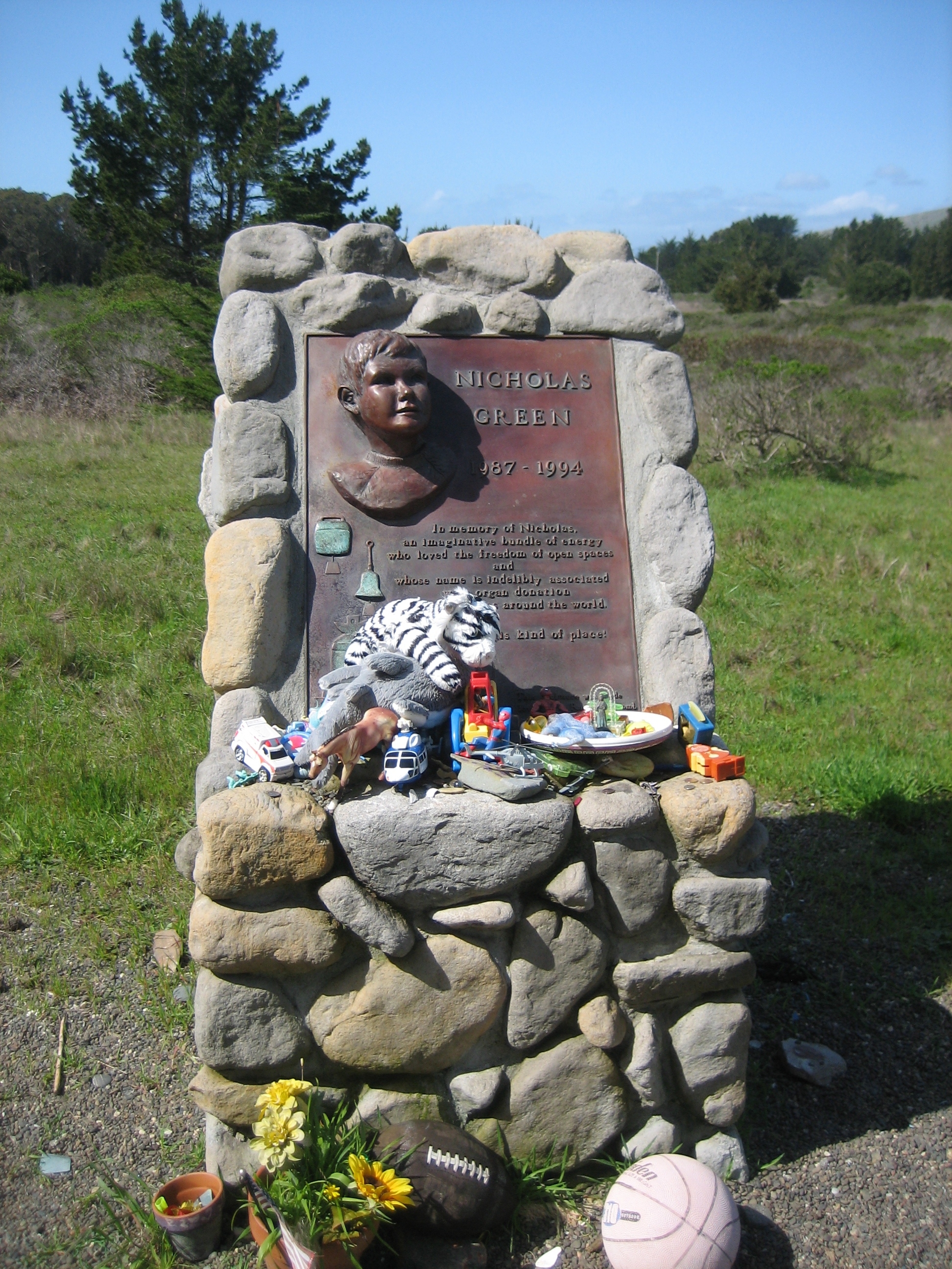 미국 캘리포니아 보데가 베이에는 니컬러스 그린과 모든 어린이를 기리는 기념 종탑인 "어린이 종탑"이 세워졌다. 이 종탑은 이탈리아 전역의 개인, 가족, 학교, 교회 등에서 보내온 140개 이상의 종을 사용하여 만들어졌다. 중앙 종은 1000년 이상 교황청을 위한 종을 제작해 온 마리넬리 주조소에서 기증했으며, 교황 요한 바오로 2세가 축복하였다. 이 중앙 종에는 니컬러스의 장기를 이식받은 일곱 명의 이름이 새겨져 있다. 이 기념물은 샌프란시스코의 조각가 브루스 해슨이 제작했다.