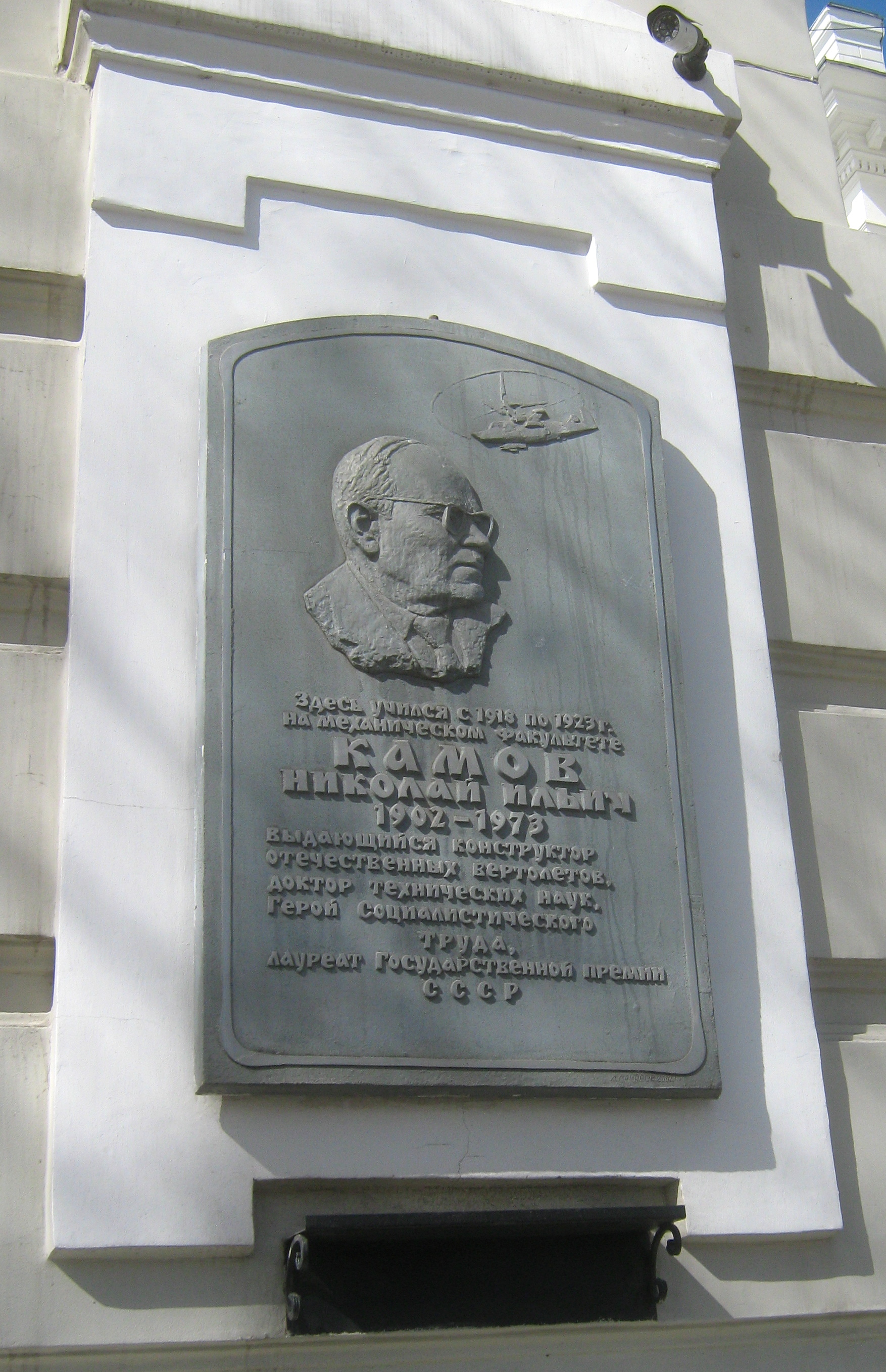 니콜라이 카모프는 러시아의 헬리콥터 설계자이다. 1902년 이르쿠츠크에서 태어나 톰스크 공과 대학교에서 공학 학위를 받았으며, 드미트리 그리고로비치와 함께 일하고 중앙 공기역학 연구소에서 근무했다. 1940년 헬리콥터 설계국을 설립했고, 1973년 모스크바에서 사망했다. 1972년 사회주의 노동 영웅 칭호를 받았으며, 레닌 훈장, 노동 적기 훈장, 소련 국가상을 수상했다. 사후 모스크바 노보데비치 묘지에 묻혔으며, 그의 이름을 딴 헬리콥터 제조업체가 존재한다. 톰스크 공항은 그의 이름을 따 톰스크 카모프 공항으로 개명되었고, 이르쿠츠크에는 기념비가 세워졌다.