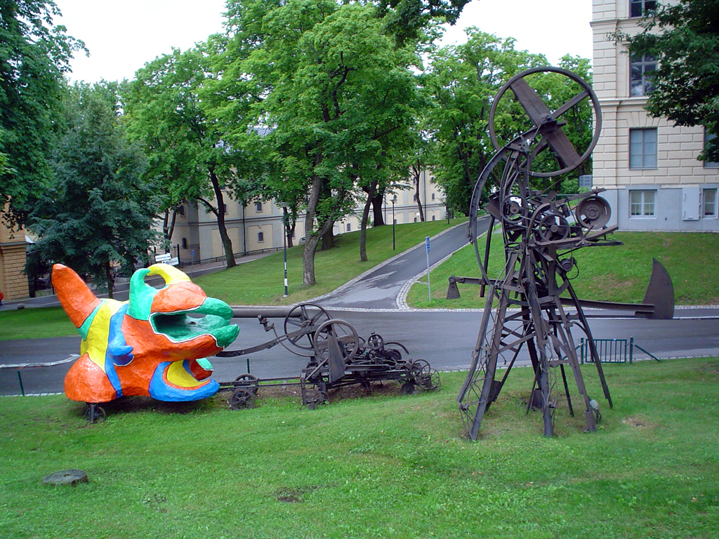1966년에는 스톡홀름 미술관에서 장 팅겔리와 합작하여 《혼(그녀)》라는 인형 작품을 발표하여 화제를 불러일으켰다. 이 작품은 극채색 여체상으로 대지모신의 생명력이 흐르고 있으며, 여자의 음부를 통해 관중들이 들어가 태내를 돌아다니는 형태로 표현되었다.