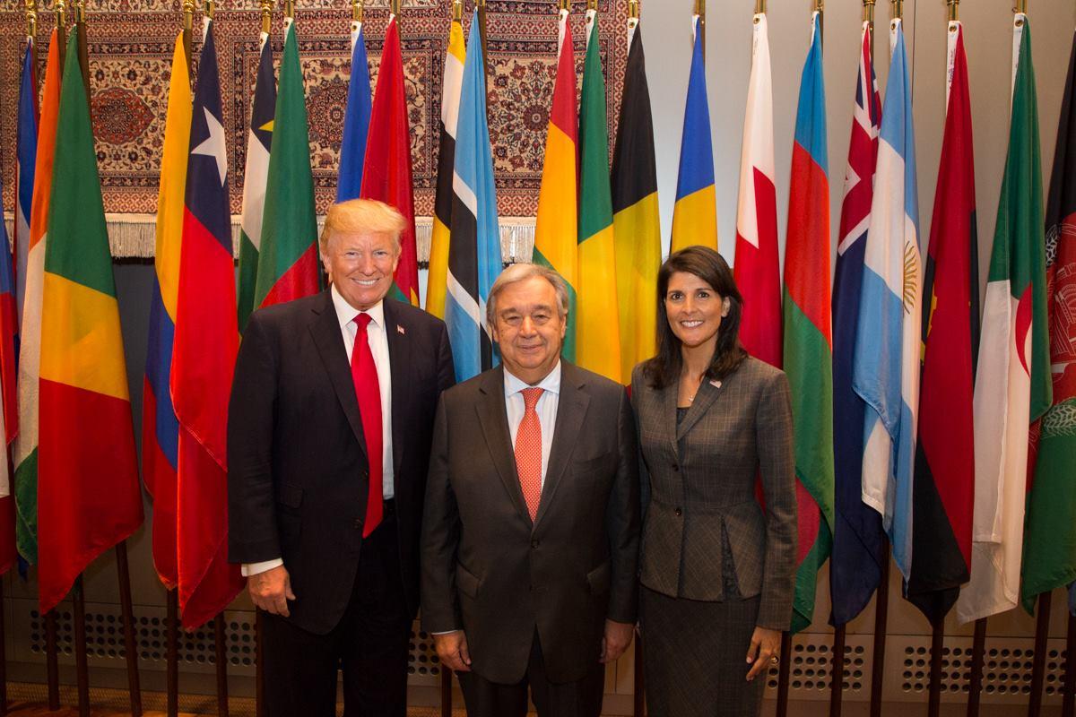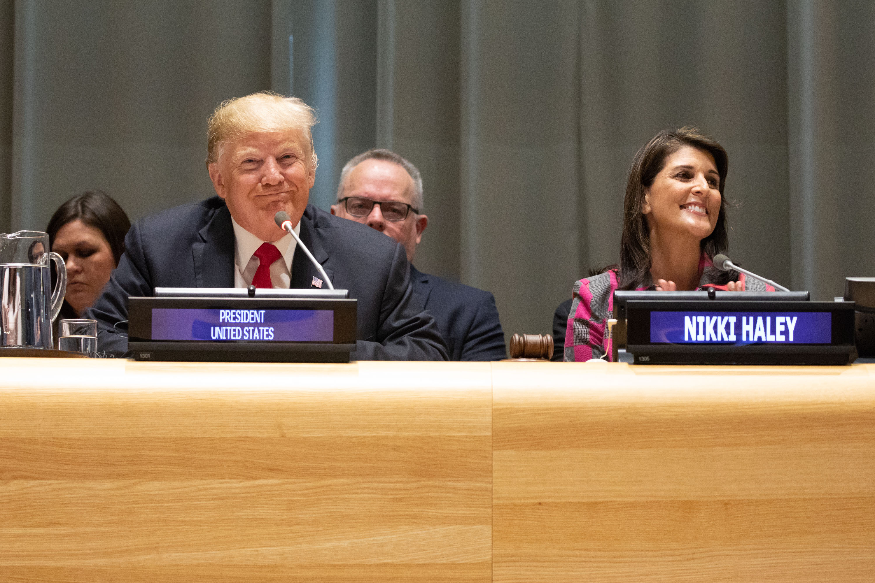2016년 11월 23일, 당시 대통령 당선인이었던 도널드 트럼프는 니키 헤일리를 유엔 대사로 지명할 것이라고 발표했다.[138] 트럼프는 헤일리가 "배경이나 정당에 관계없이 사람들을 하나로 모아 주와 국가의 개선을 위한 중요한 정책을 추진해 온 검증된 기록을 가지고 있다"며 "그녀는 세계 무대에 우리를 대표하는 위대한 지도자가 될 것"이라고 말했다. 헤일리는 트럼프 행정부에서 내각급 직책을 맡은 최초의 인도계 미국인이었다.[142]
