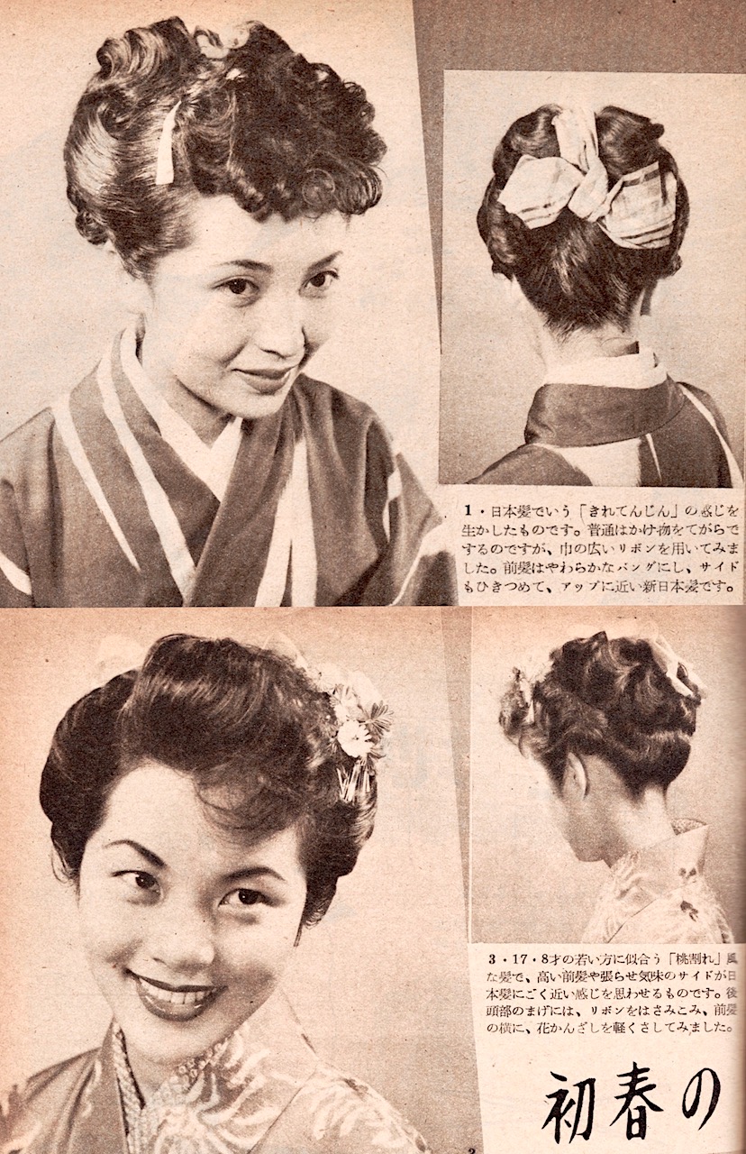 라지오마키(ラヂオ巻き) 등 서양식 머리 모양도 등장했으나, 전시 체제에 들어가기 전까지는 기모노를 입을 때 종래의 니혼가미(와 시로누리를 이용한 두꺼운 화장)를 유지하는 경우도 있었다.[1]