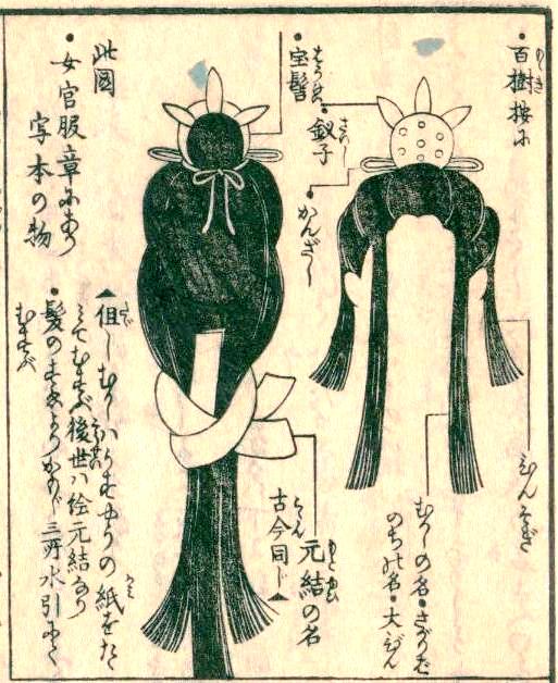 - 미즈라(角髪) - 고훈 시대(나이 불문)부터 사용된 머리 모양. 나라 시대 이후에는 귀족의 자제의 머리 모양