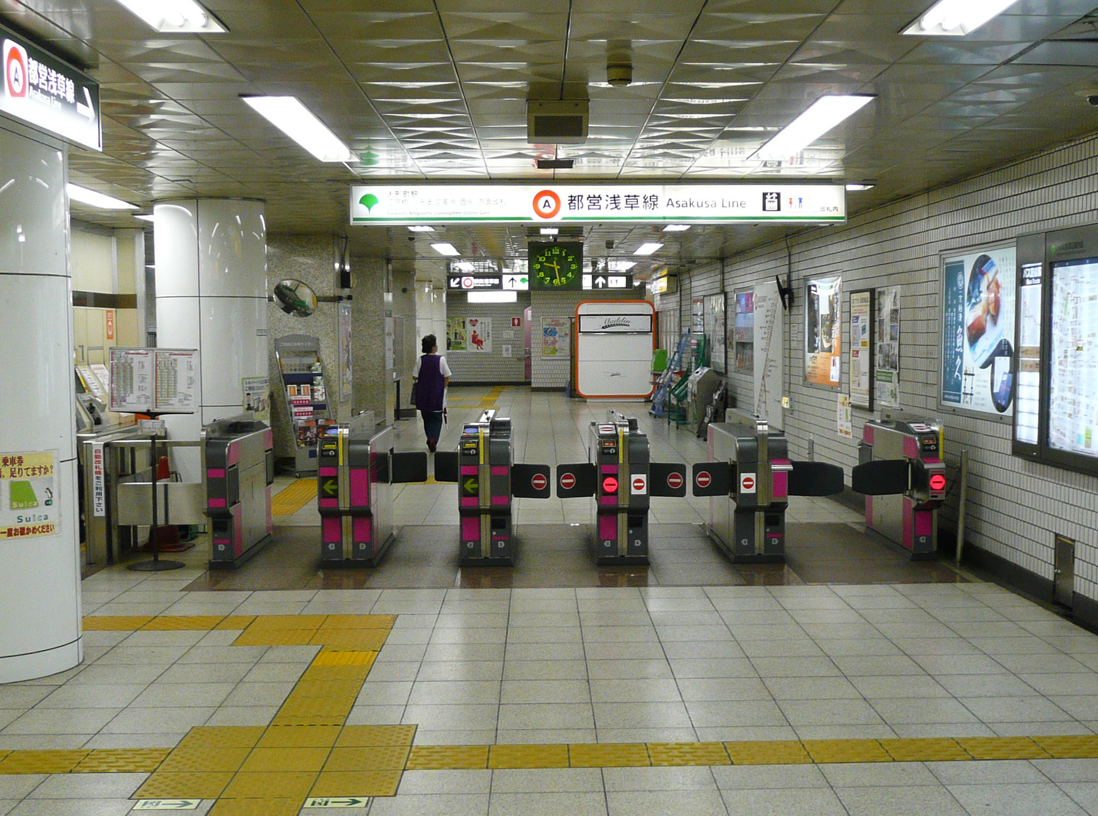 A1·A2 출입구 및 스이텐구마에 교차로 방면 개찰구는 히비야선 승객 전용으로, 스이텐구마에 교차로 방면 개찰구와 닌교초 교차로 방면 개찰구를 연결하는 개찰구 밖 통로는 없다. 이전에는 A1·A2 출입구에 "도영 아사쿠사선 타는 곳이 아닙니다"라고 표기된 큰 포스터가 게시되었지만, 환승 전용 개찰구의 공용이 시작된 2017년 4월 1일부터 IC 카드 이용자에 한해 아사쿠사선과 히비야선의 구내를 통과할 수 있는 서비스가 도입되었다.[11]