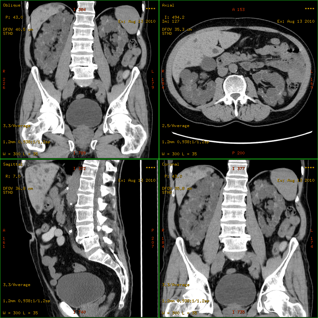 초음파 검사, CT 스캔, MRI 등의 영상 검사를 통해 다낭성 신장 질환을 확인할 수 있다.[22] 이를 통해 신장에 낭종이 있는지, 낭종의 크기와 개수는 어떻게 되는지 등을 알 수 있다. 신체 검사에서는 비대해진 간, 심잡음, 상승된 혈압 등이 확인될 수 있다.[8]4. 2. 유전자 검사