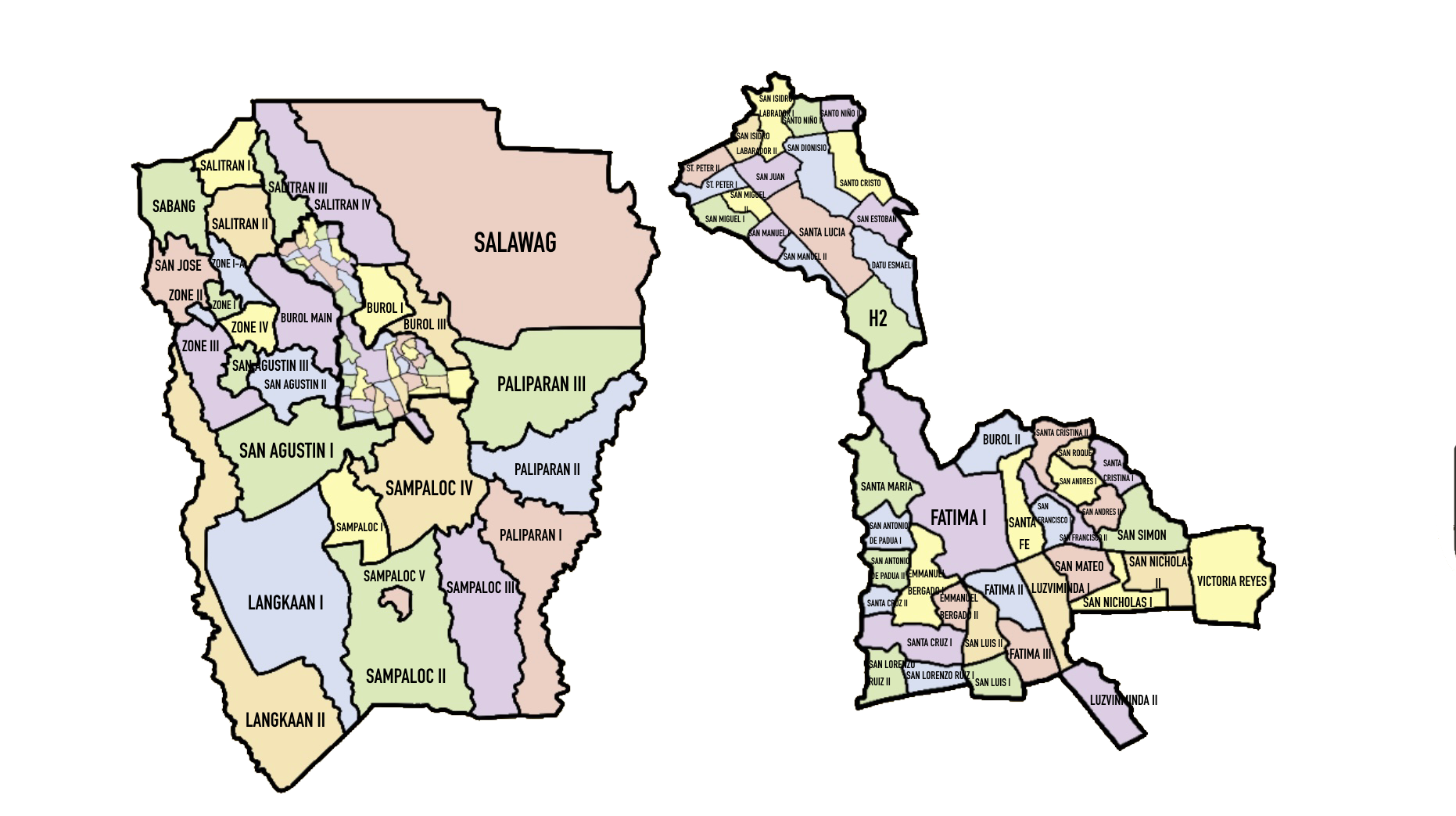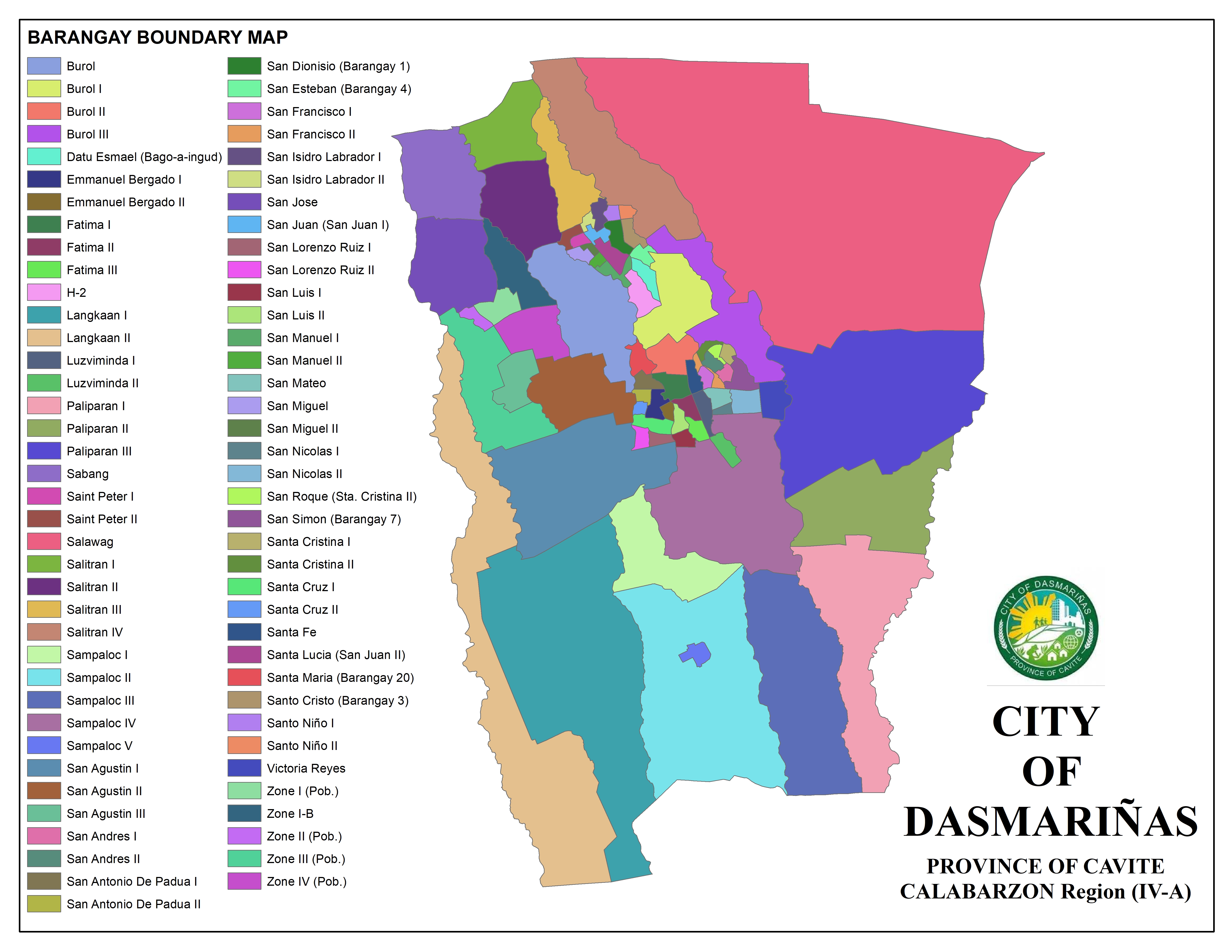 이 도시는 75개의 바랑가이와 180개 이상의 세분화된 지역, 그리고 필리핀에서 가장 큰 재정착 지역인 다스마리냐스 바공 바얀(DBB)을 가지고 있다.