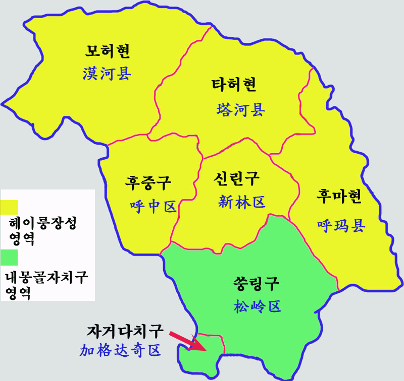 다싱안링 지구 현급 행정구역 지도
