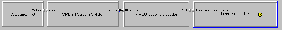 DirectShow를 사용하는 애플리케이션은 필요한 필터의 인스턴스를 생성하고 연결하여 필터 그래프를 구축한다.[21] GraphEdit는 필터 그래프를 시각적으로 구축하고 테스트하는 데 사용되는 DirectShow용 GUI가 있는 애플리케이션이다.[22]