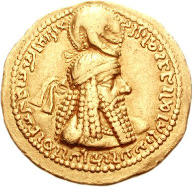 다이아뎀을 착용한 사산 제국아르다시르 1세가 양각된 주화.