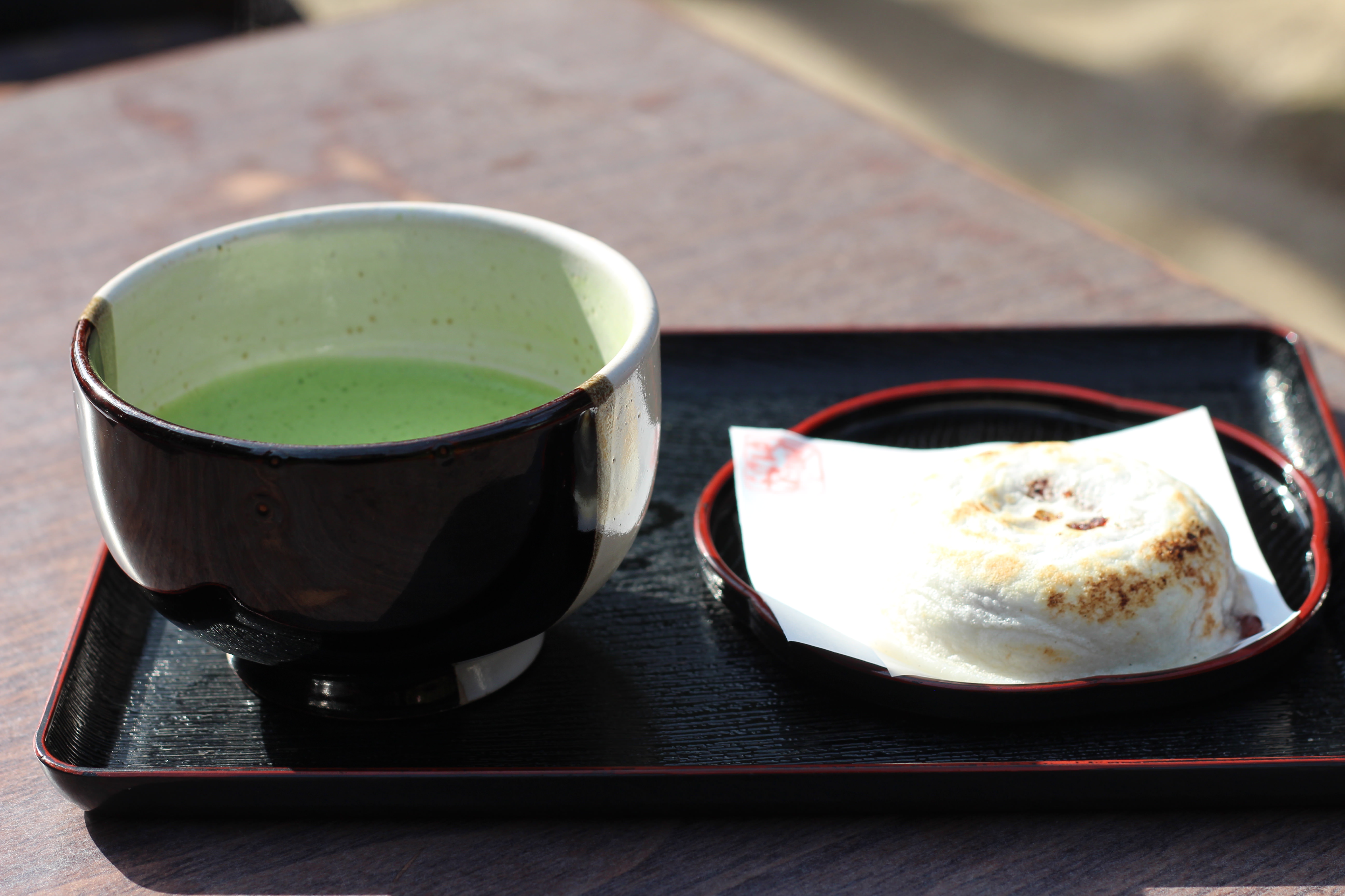 오모테산도에서 경내 안쪽까지 곳곳에 차집이 있으며, 그 대부분은 메뉴에 우메가에모치를 준비하고 있다. 그러한 차집 중 하나인 "오이시 차집"에 대해 요시이 이사무는 다음과 같은 시를 지었다.