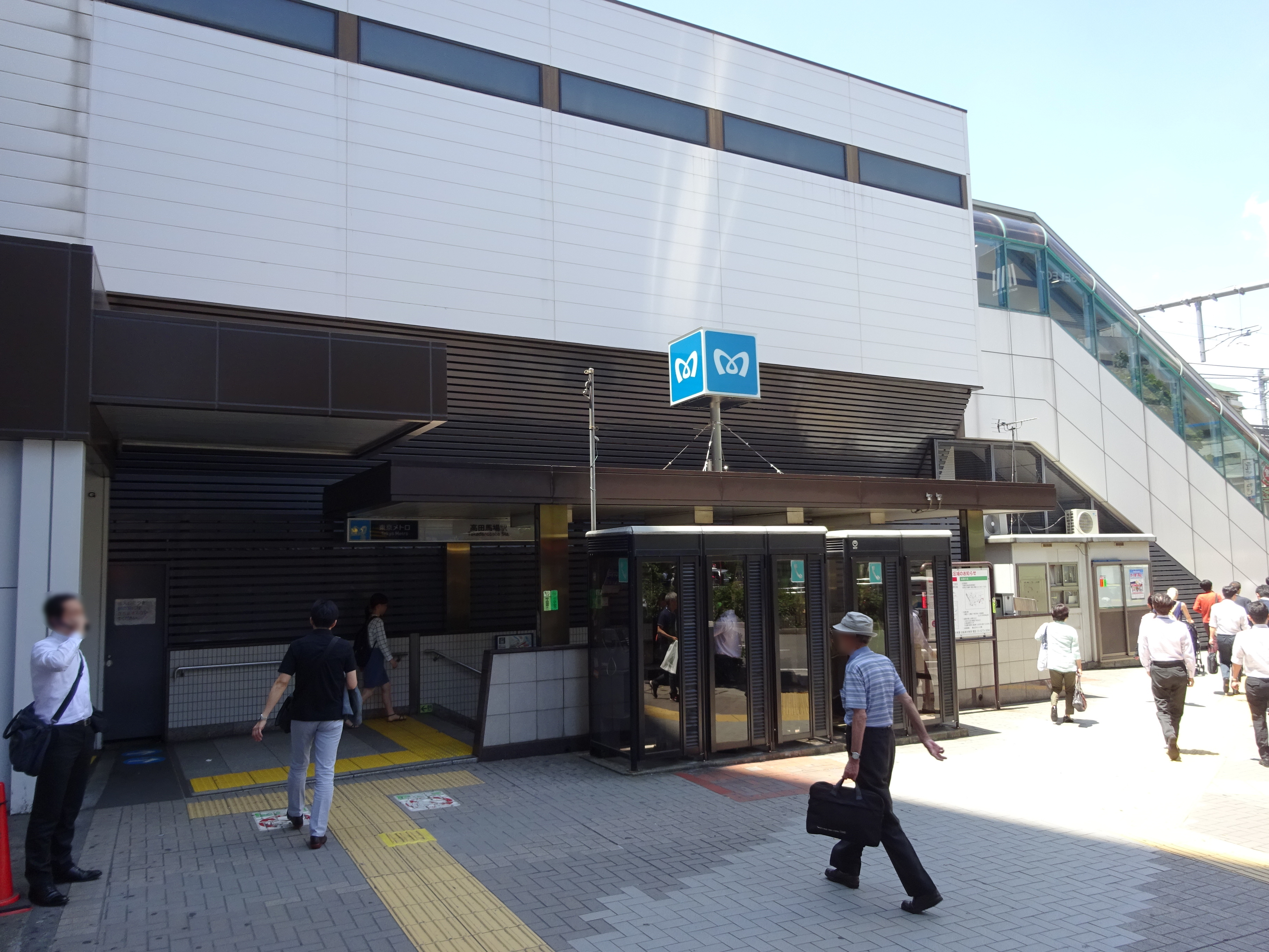 - 도쿄 메트로: 도쿄 메트로 도자이선이 지나가며, 나카노역 방면 열차는 주오선(각역 정차)과, 니시후나바시역 방면 열차는 도요 고속선과 직통 운행한다. 평일 아침 저녁에는 쓰다누마역까지 소부선(각역 정차)으로 직통 운행하기도 한다. 역 번호는 '''T 03'''이다.