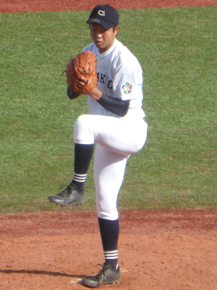 아이치현나고야시의 주쿄 대학 부속 주쿄 고등학교에 진학하여, 2학년 때 에이스로서 제72회 아이치현 고교 야구 선수권 대회, 추계 도카이 대회, 제50회 메이지 진구 야구 대회에서 우승을 경험했다. 겨울에는 아이치 고교 연맹에 의해 결성된 아이치현 고교 야구 선발의 대만 원정 멤버로 선출되어, 자신을 포함한 주쿄대 중쿄 고등학교의 멤버 10명 외에 현내 다른 학교의 유망 선수로 선출된 우에다 코타로나 나카가와 타쿠마 등과 함께 참가했다.[10] 3학년 때는 아이치현 독자 대회에서 최고 구속 154km/h를 기록한 데다 우승을 차지했고, 고시엔 교류 시합에서는 지벤 학원 고등학교를 상대로 승리를 거두어, 주쿄대 중쿄는 공식전 무패로 시즌을 마무리했다. 주쿄대 중쿄의 팀 동료로, 같은 학년에 나카야마 레이토 (요미우리 자이언츠)[11][12], 1학년 아래에 아제야나기 쿄스케 (홋카이도 닛폰햄 파이터즈)[13]가 재학하고 있었다.